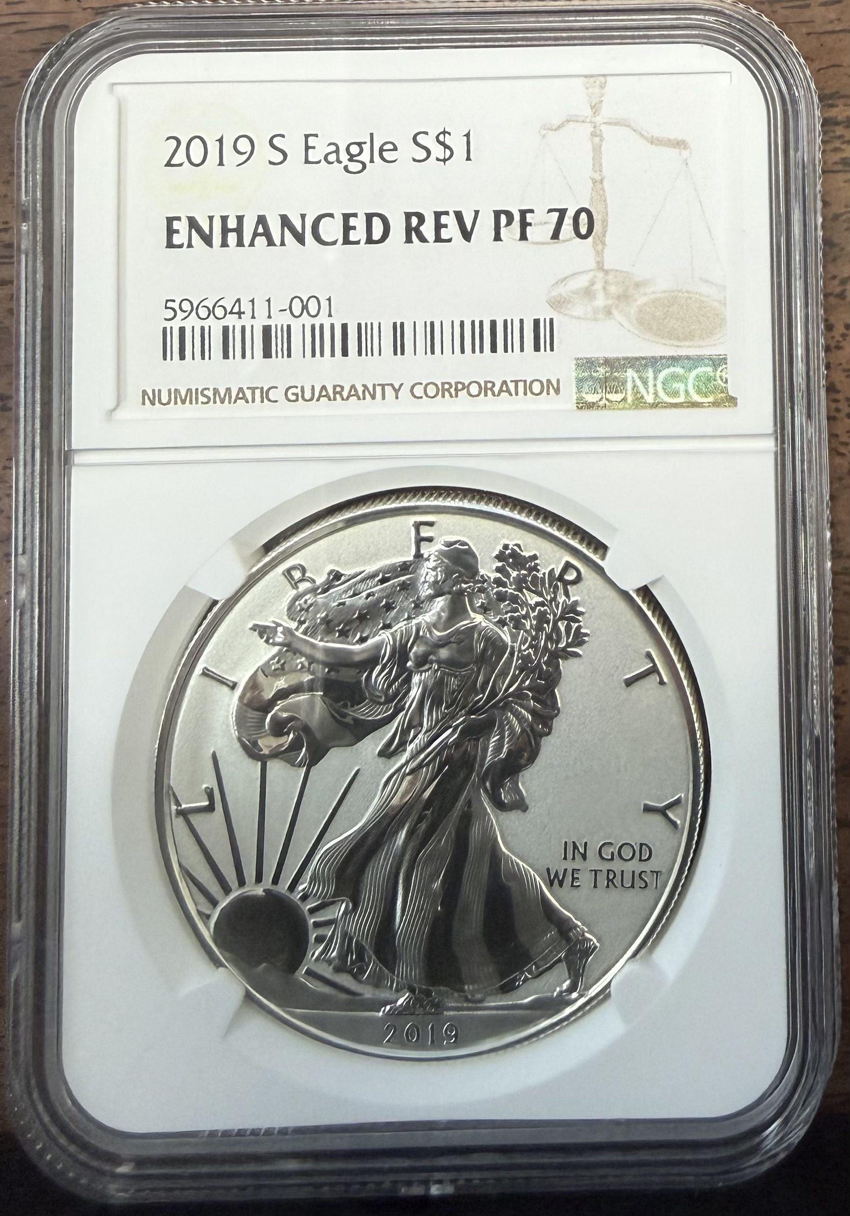 (1) 2019 S Reverse Enhanced Proof Silver Eagle NGC PF70