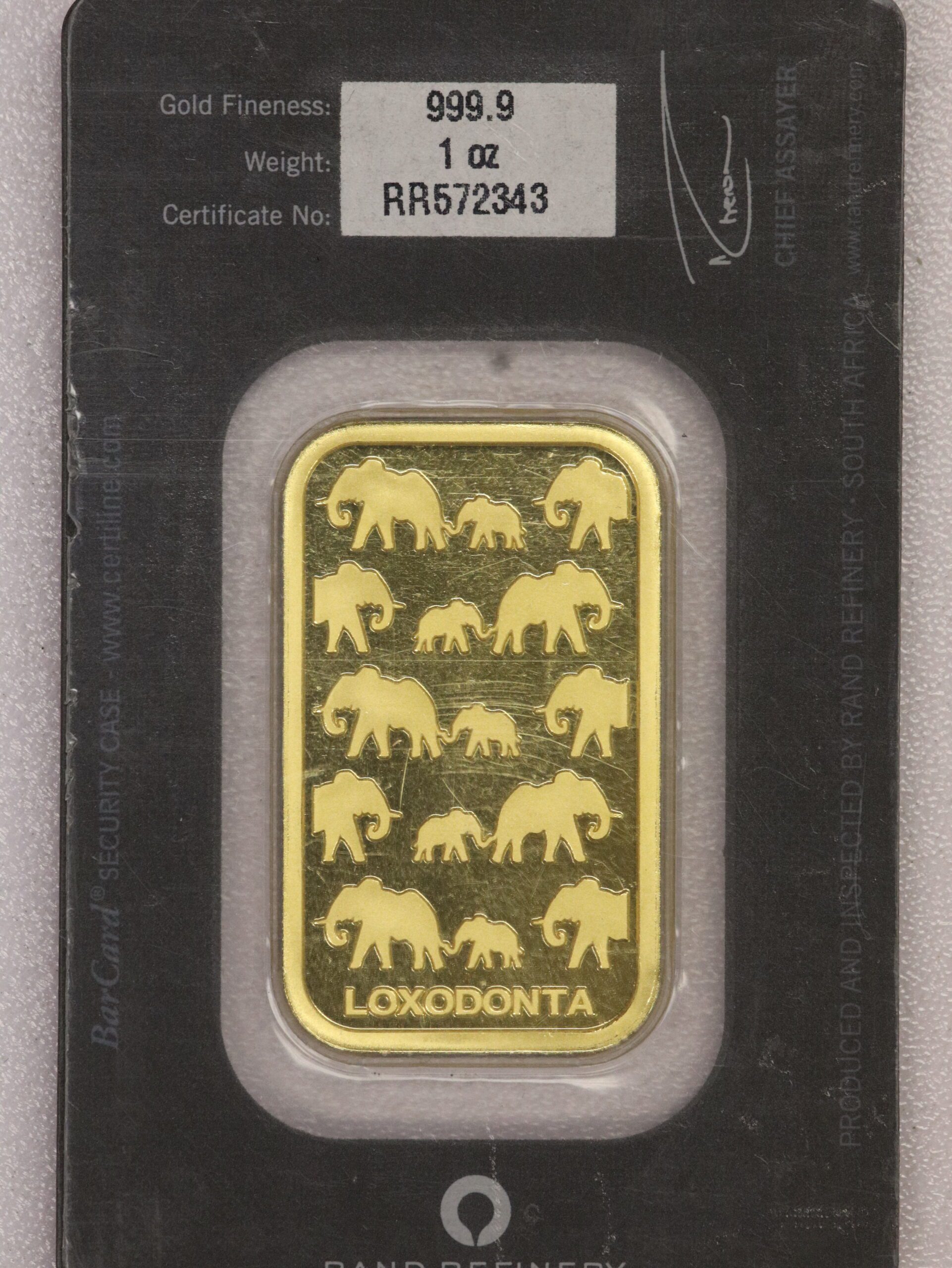 1 oz 999.9 Rand Refinary Gold Bar With Assay Card