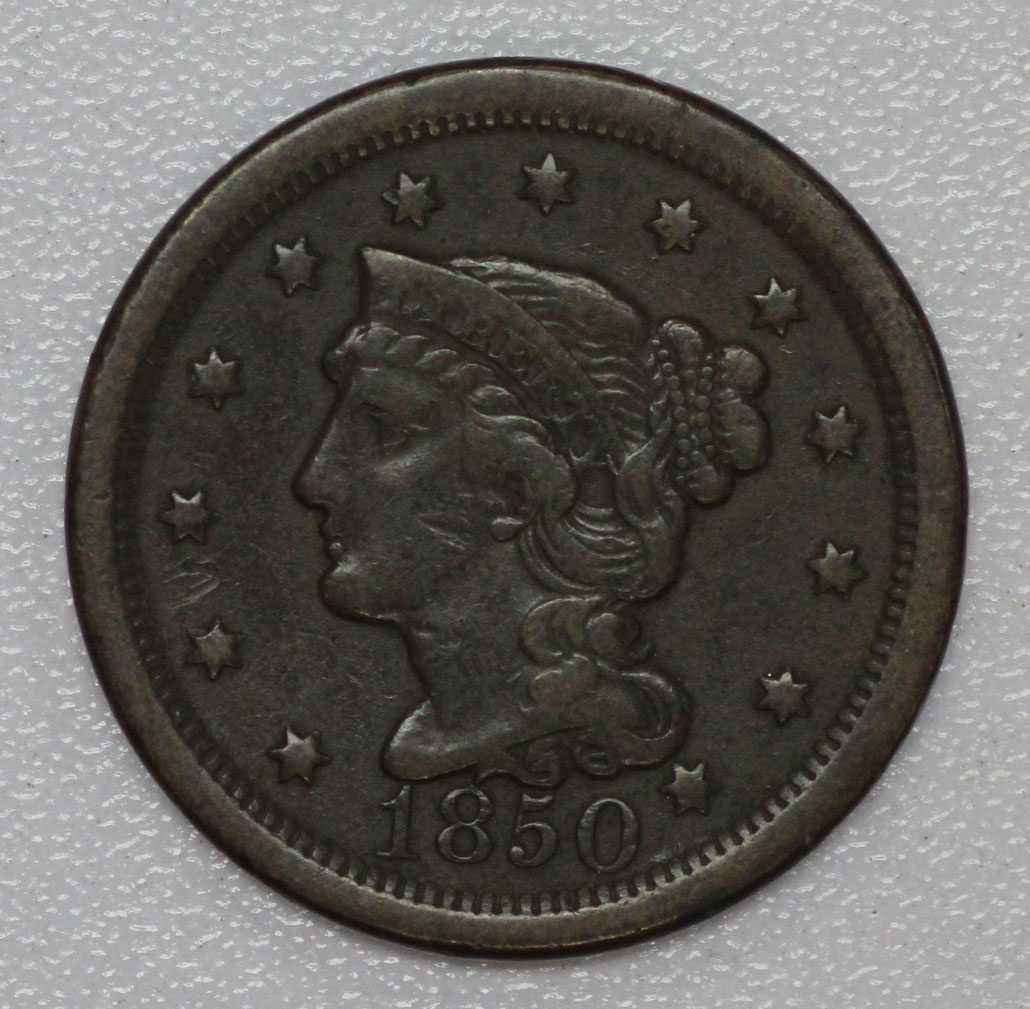 1850 Braided Hair Large Cent – Fine