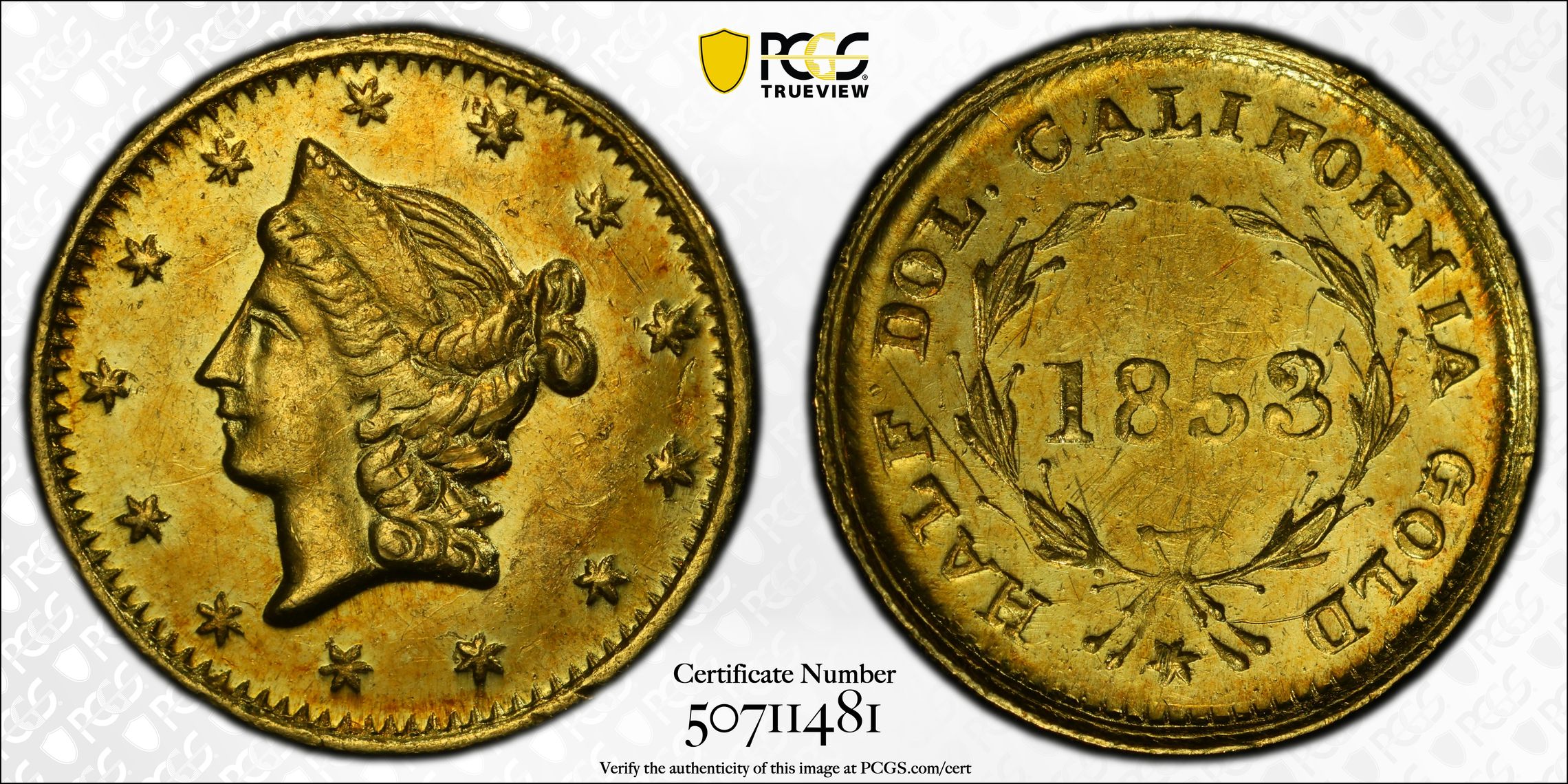 1854 Braided Hair Half Cent CACG UNC Details