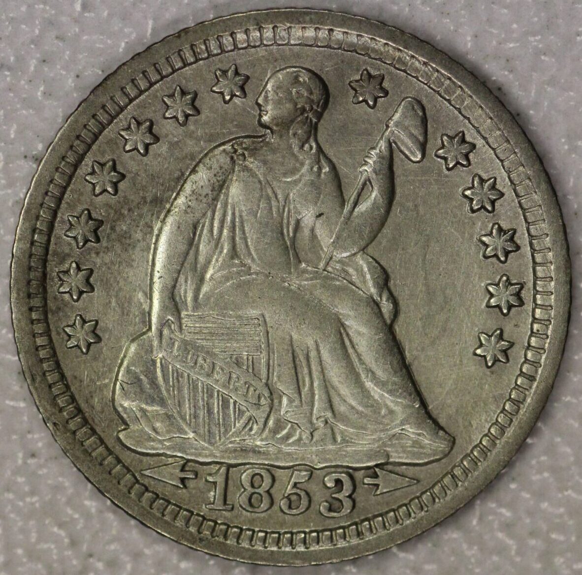 1853 With Arrows Seated liberty Half Dime Choice EF Old Cleaning