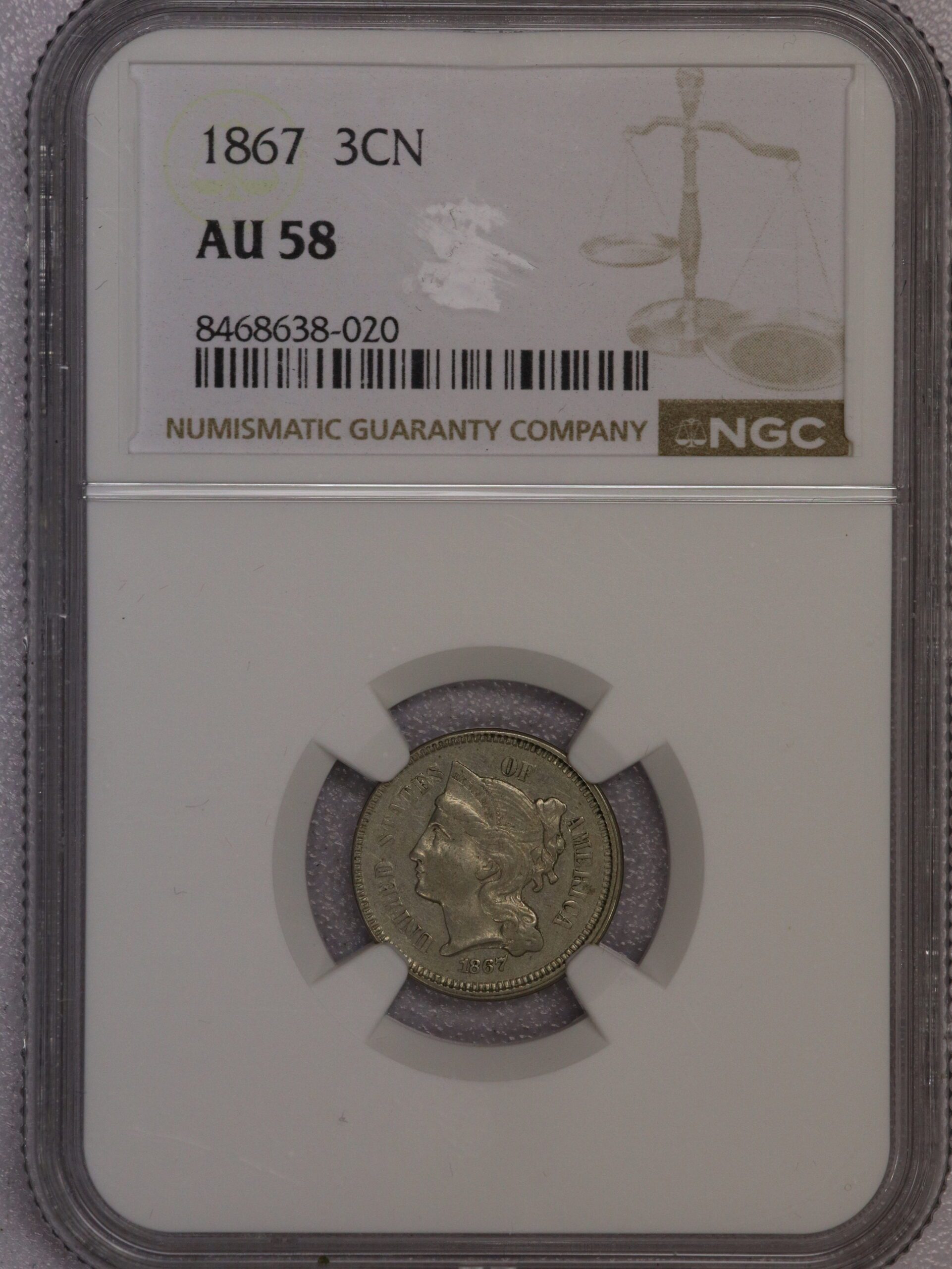 1867 Three Cent Nickel AU58 NGC