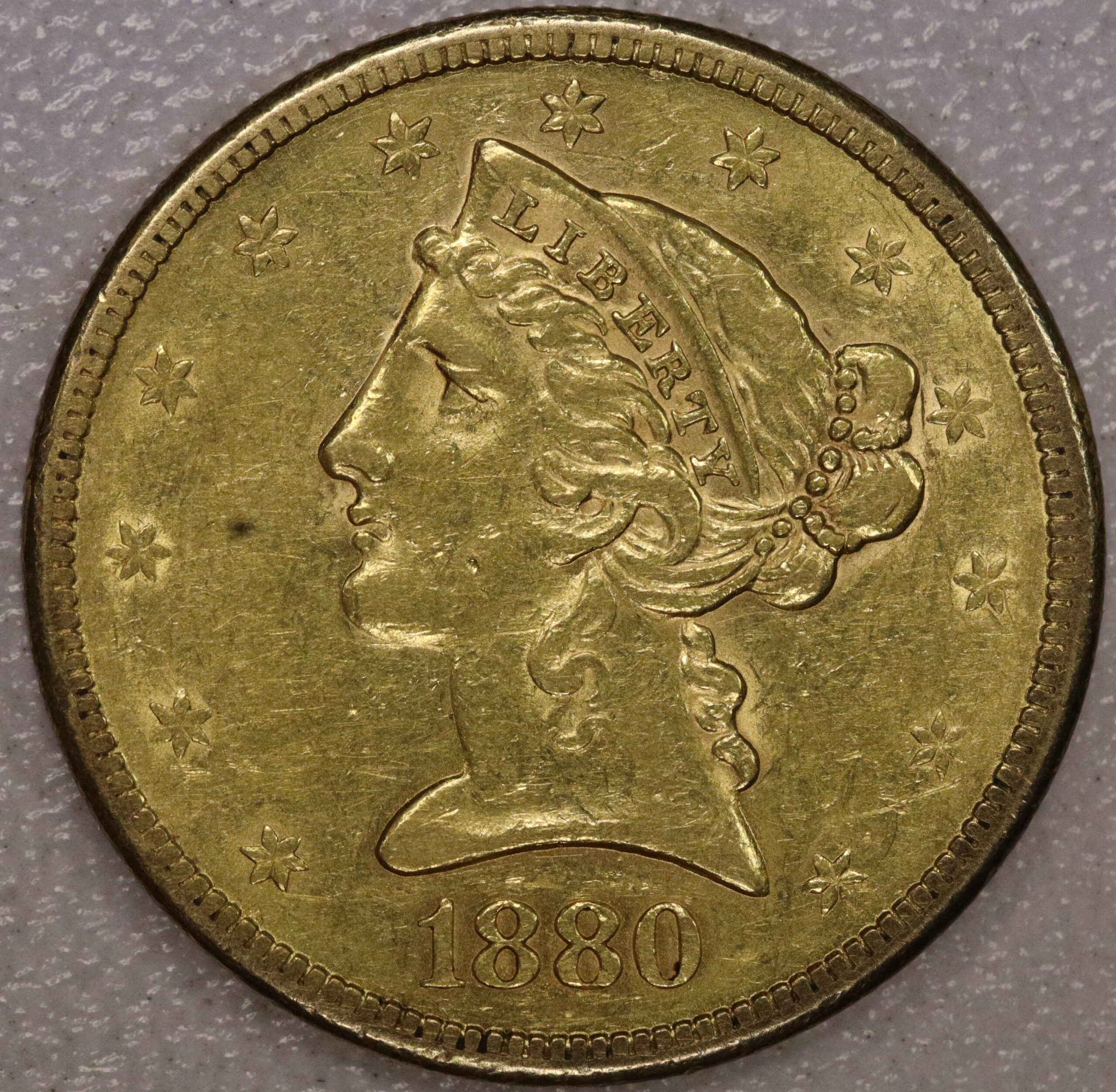 1880 S $5 Gold Liberty Half Eagle AU Cleaned #2