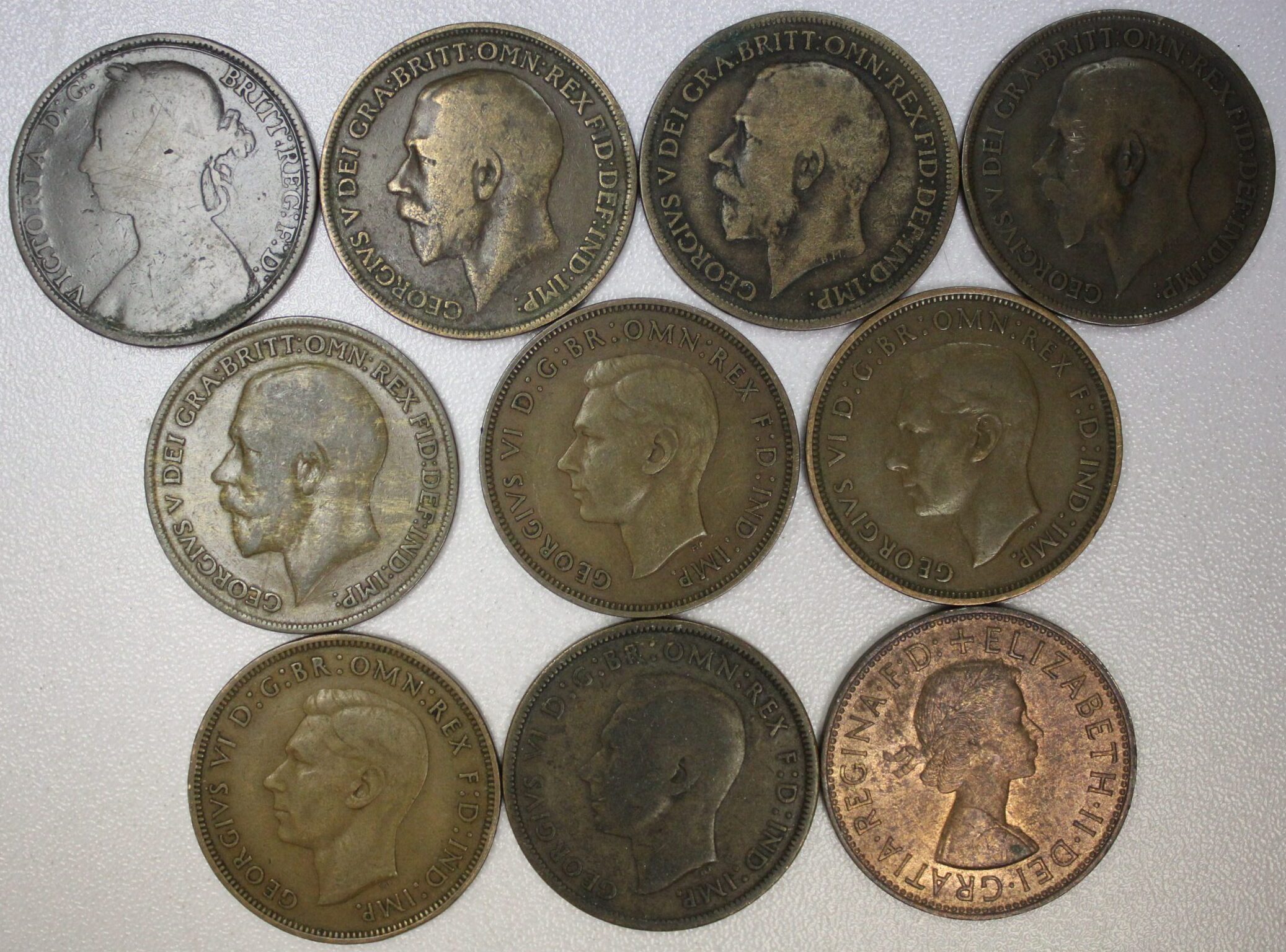 1891 to 1967 Ten Different Great Britain Large Pennies