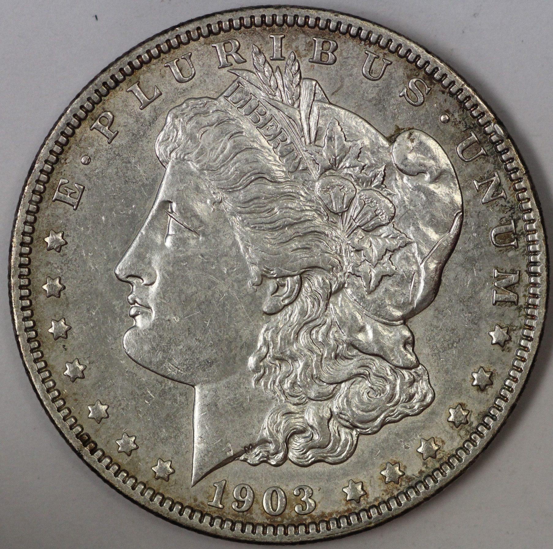 1903 Morgan Silver Dollar EF Cleaned. This is a stock photo. Your coin will be as nice or better.