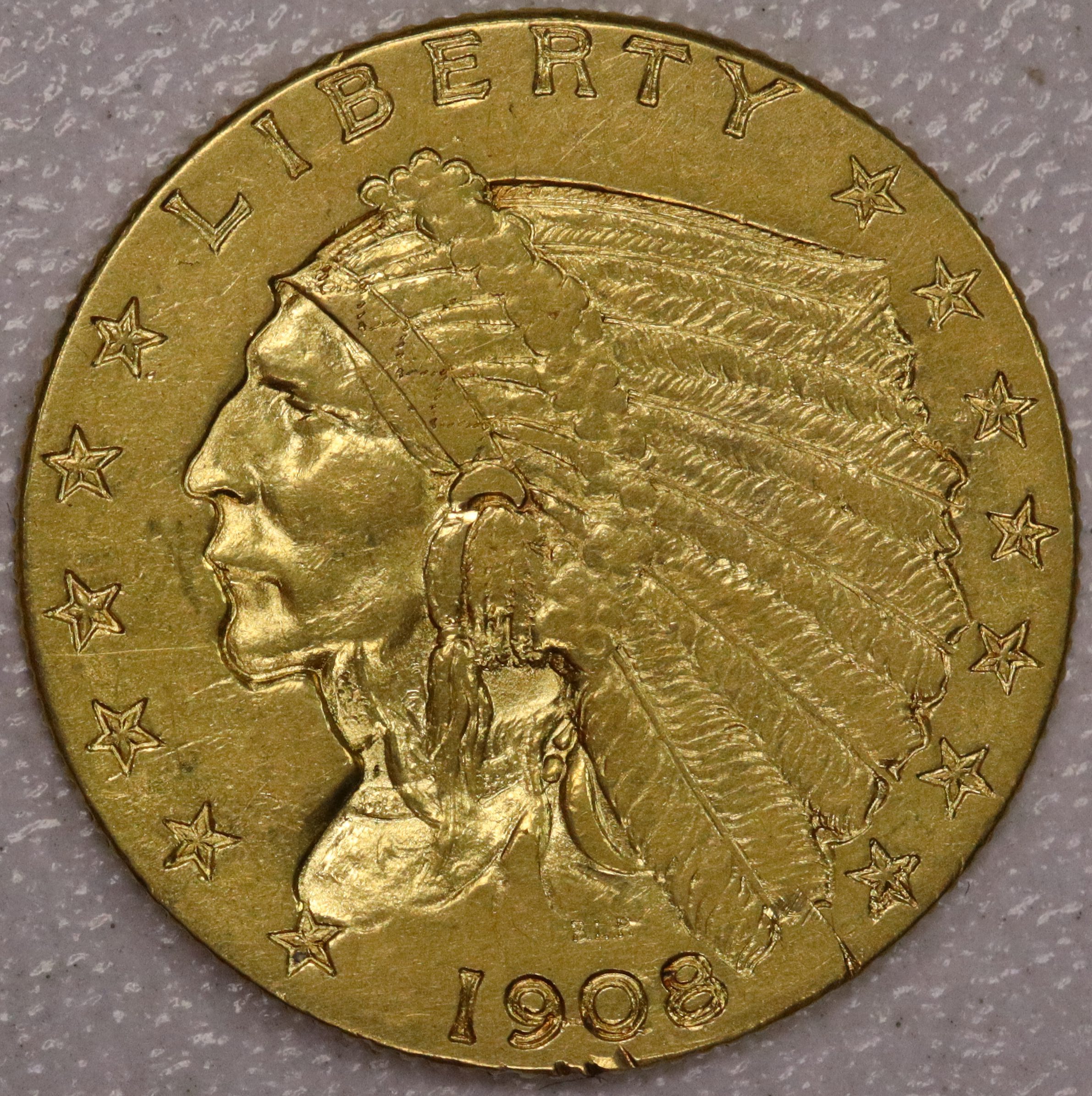 1908 AU Head $2.50 Gold AEF Rim Cuts