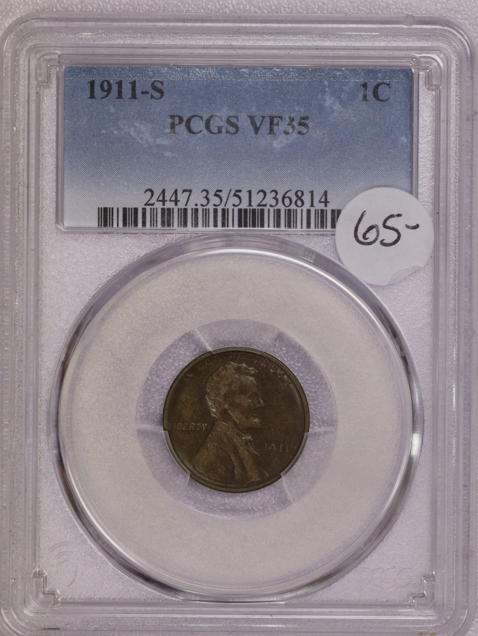 1911 S Lincoln Wheat Cent VF35 PCGS