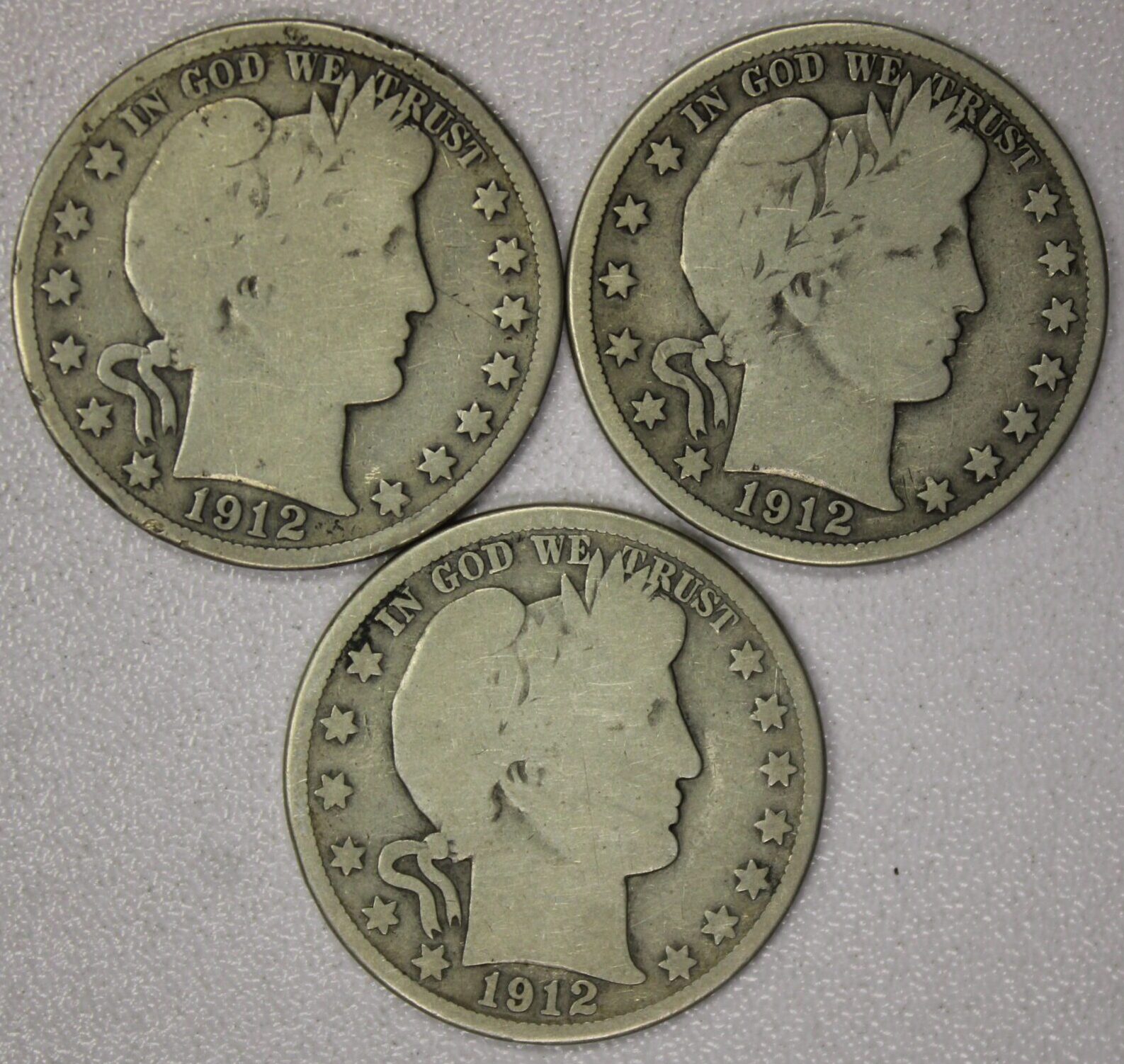 1912, 1912-D & 1912-S Barber Half Dollars Good