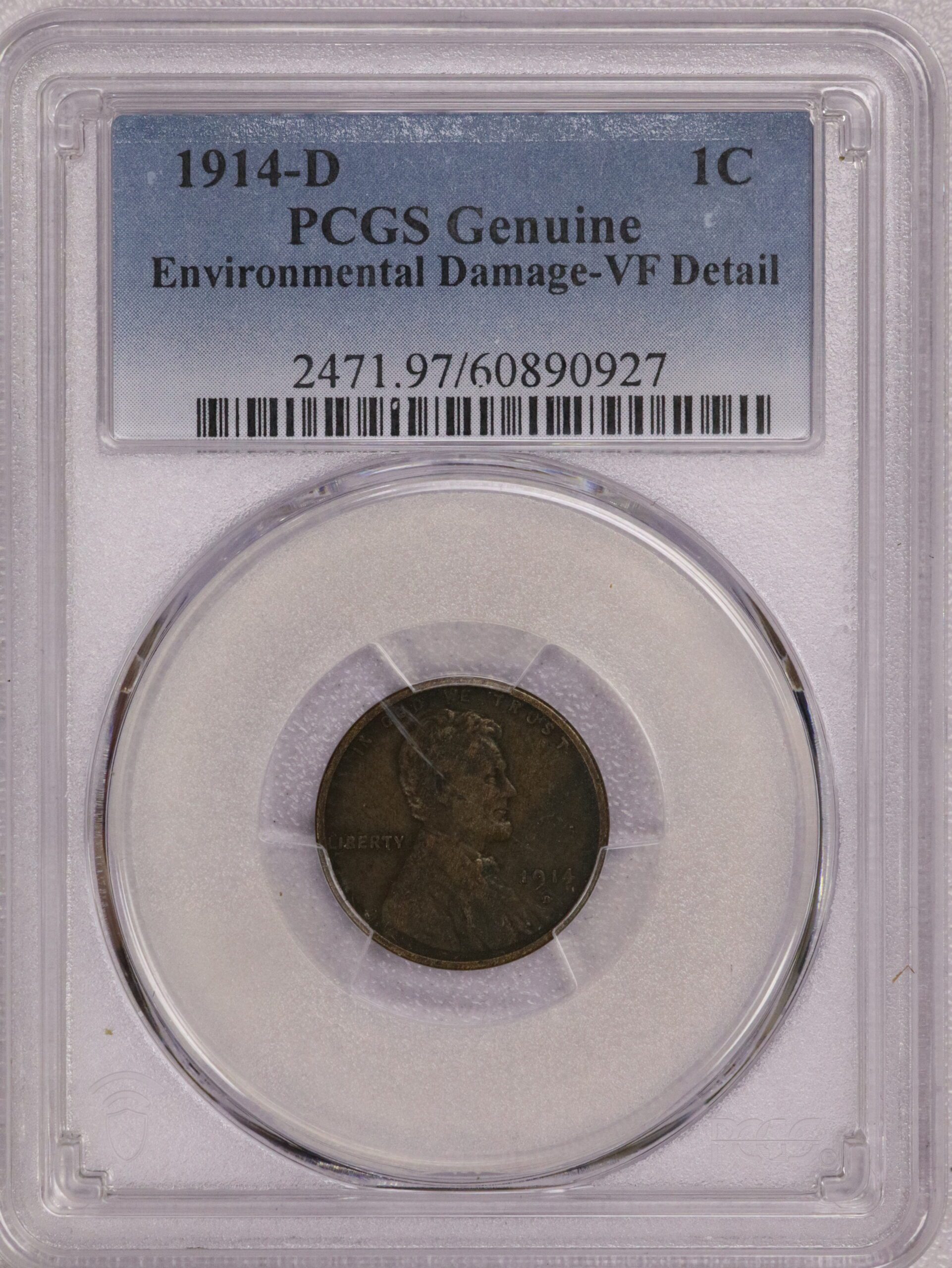 1914 D Lincoln Wheat Cent PCGS VF Environmental Damage
