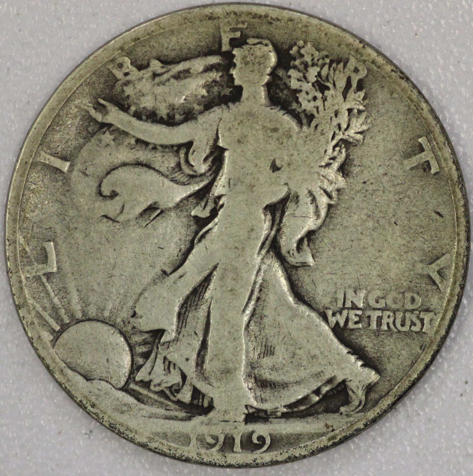 1919 Walking Liberty Half Dollar G to AG. This is a stock photo. The coin you will receive will be as nice.