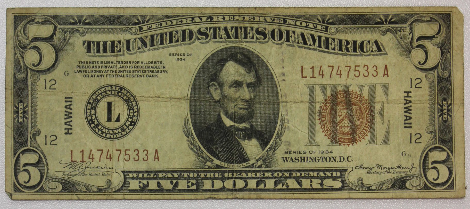Series of 1934 $5 Federal Reserve Note – Hawaii