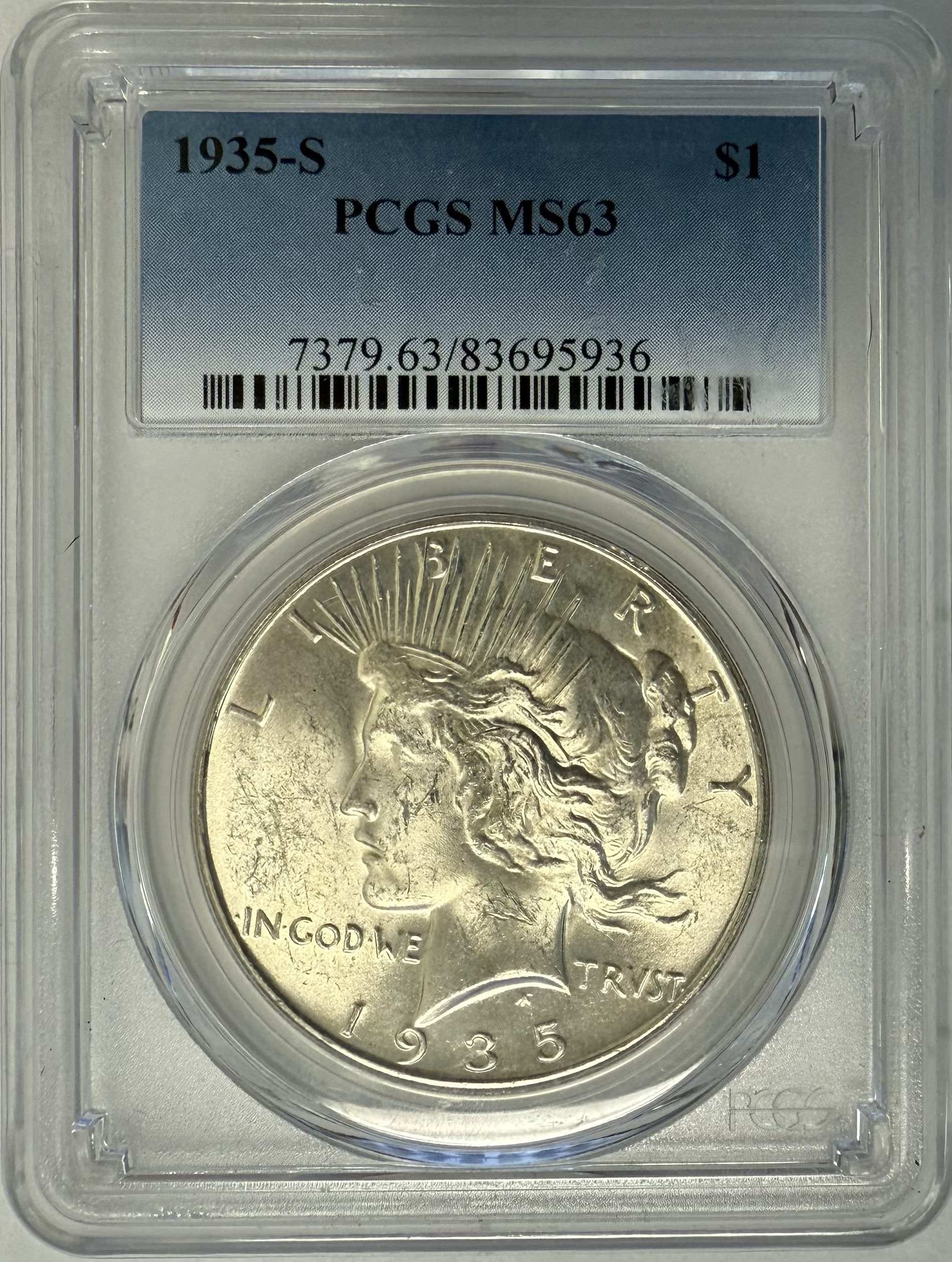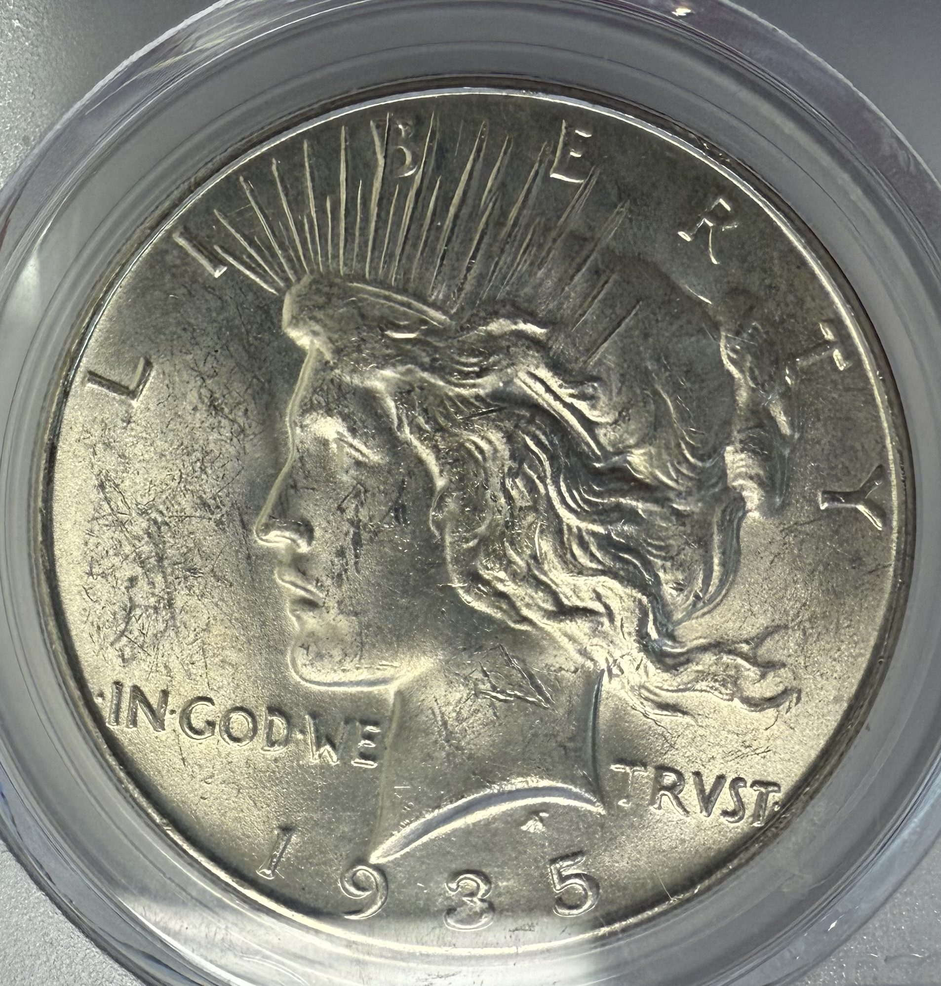 Auction - 1935 Peace Dollar UNC Scratched Toned