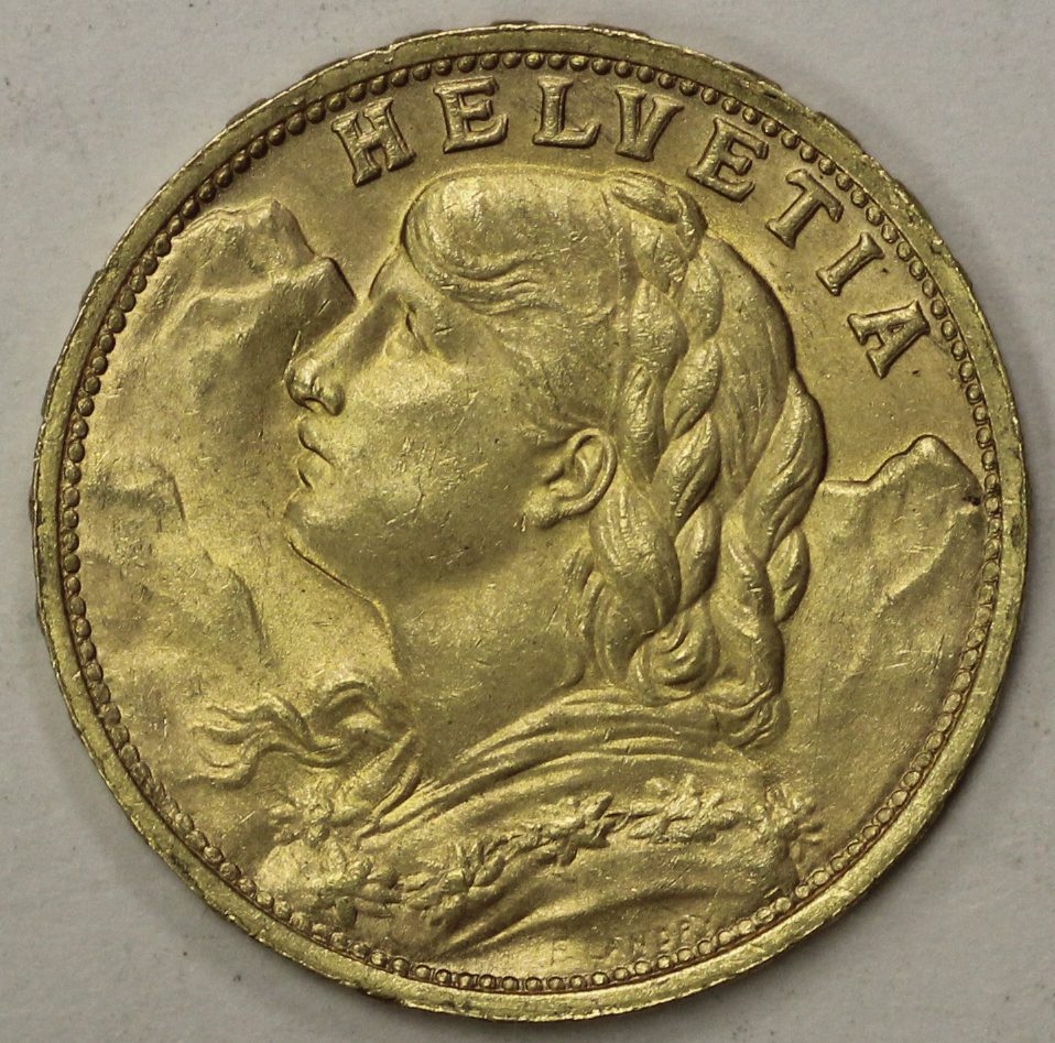 Switzerland 20 Francs Gold Coin. 90% gold. 0.1867 AGW