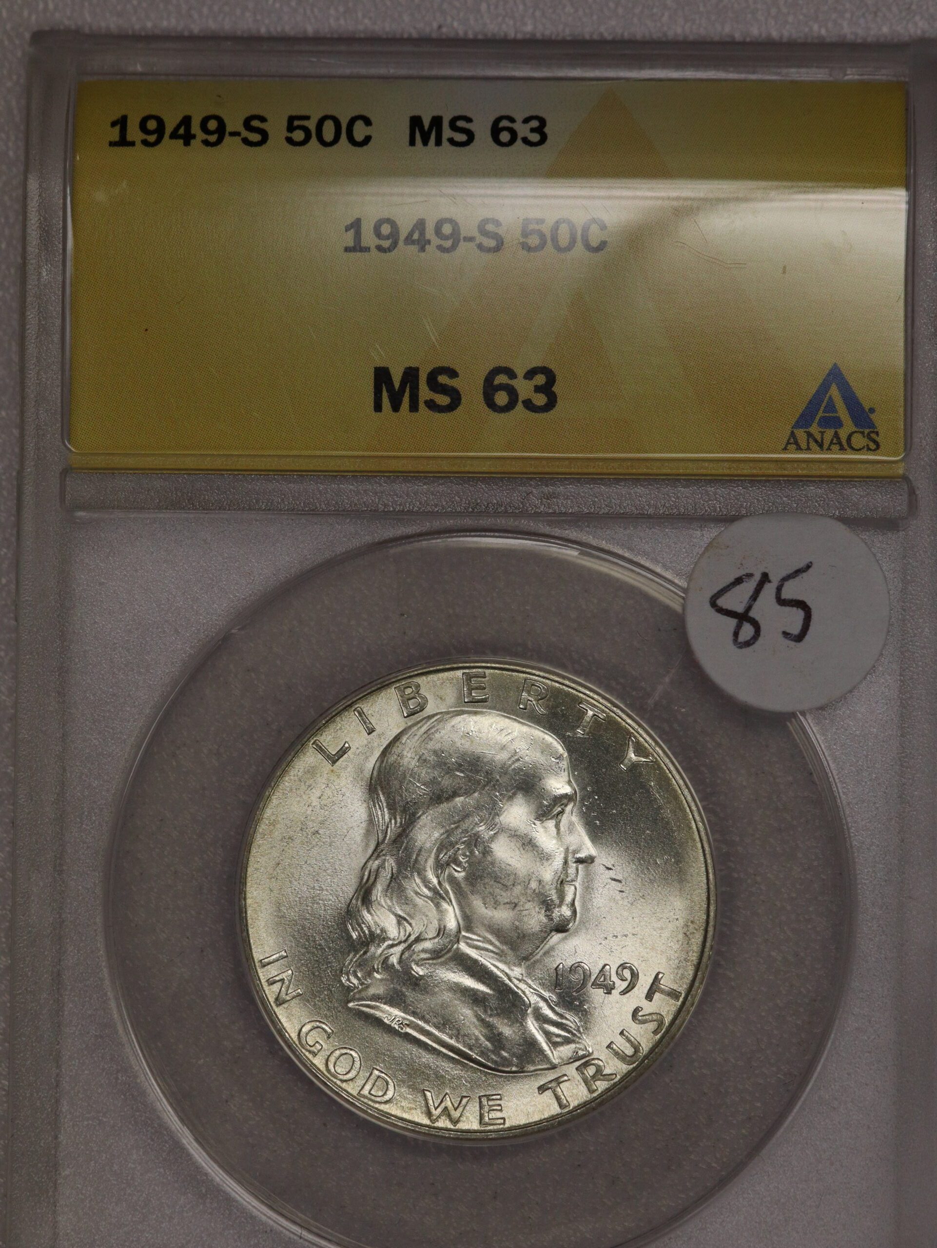 1949 Franklin Half Dollar ANACS MS62 FBL