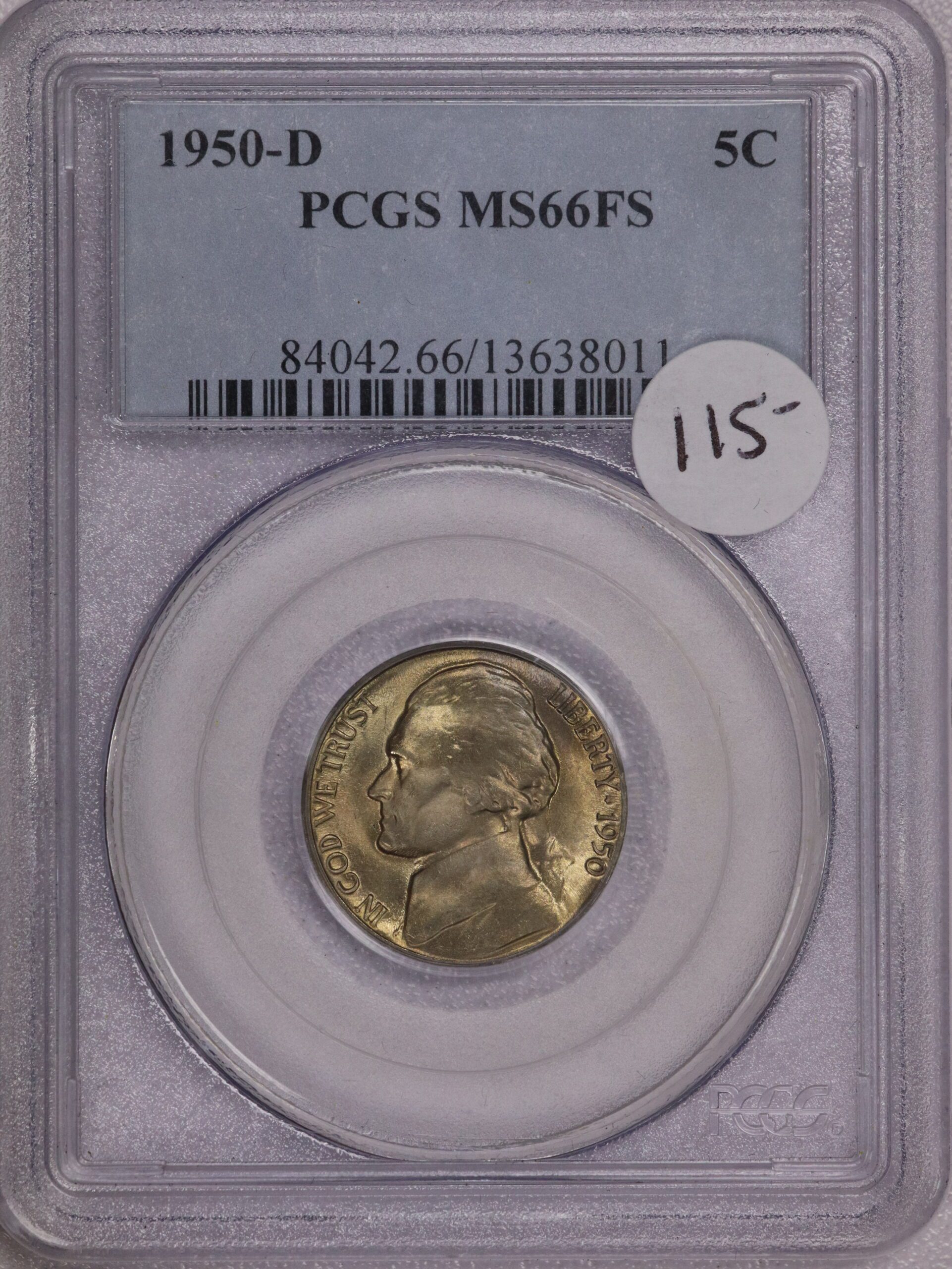 1950-D Jefferson Nickel MS66 FS PCGS