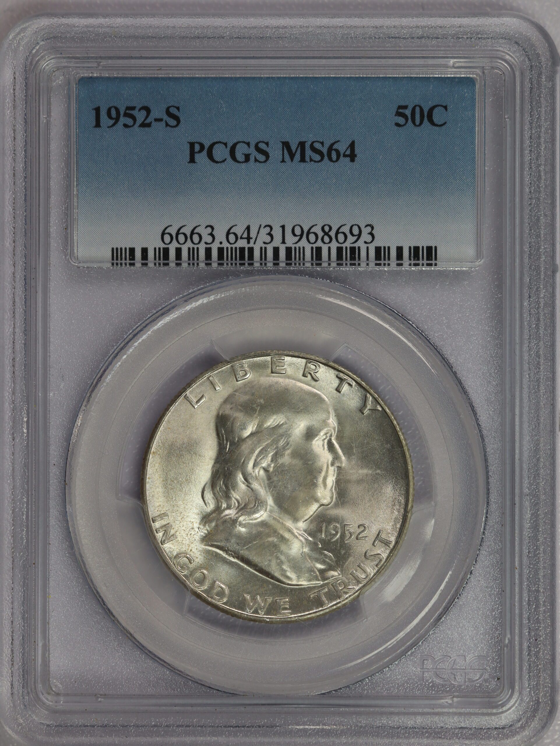 1952 S Franklin Half Dollar PCGS MS64