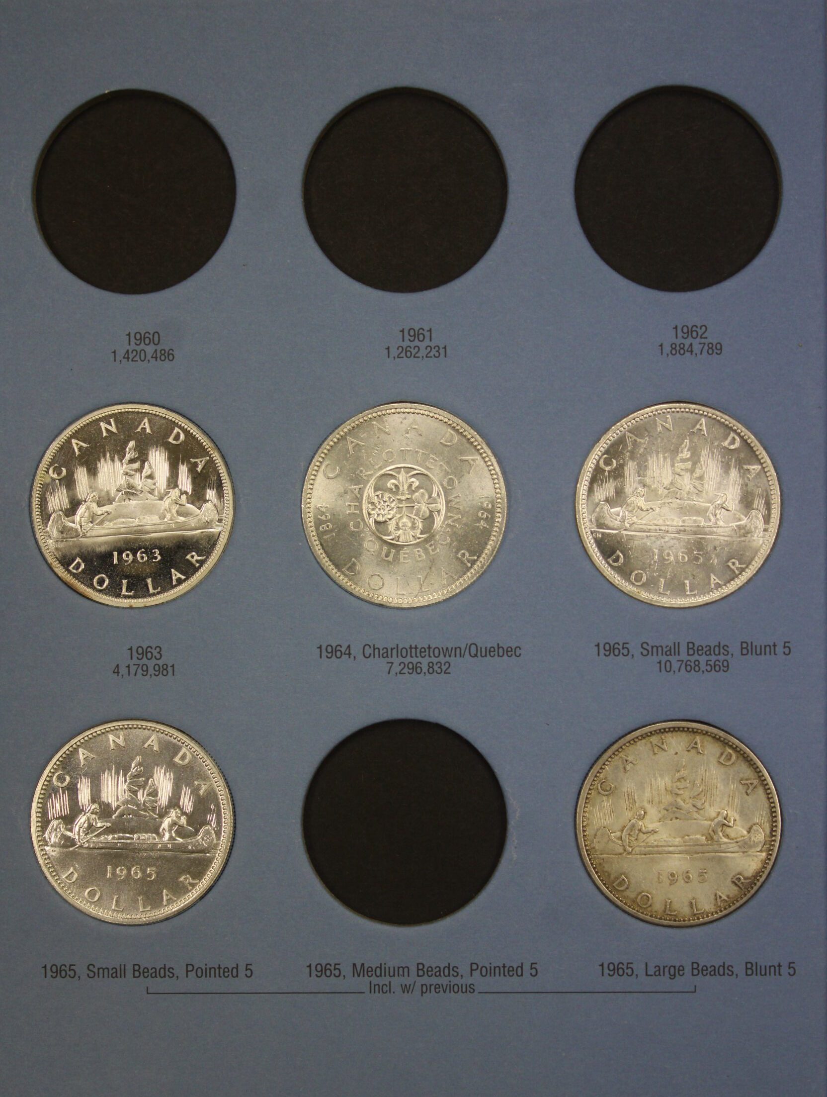 1953-1967 Canada Silver Dollars 13 Different in Whitman Album