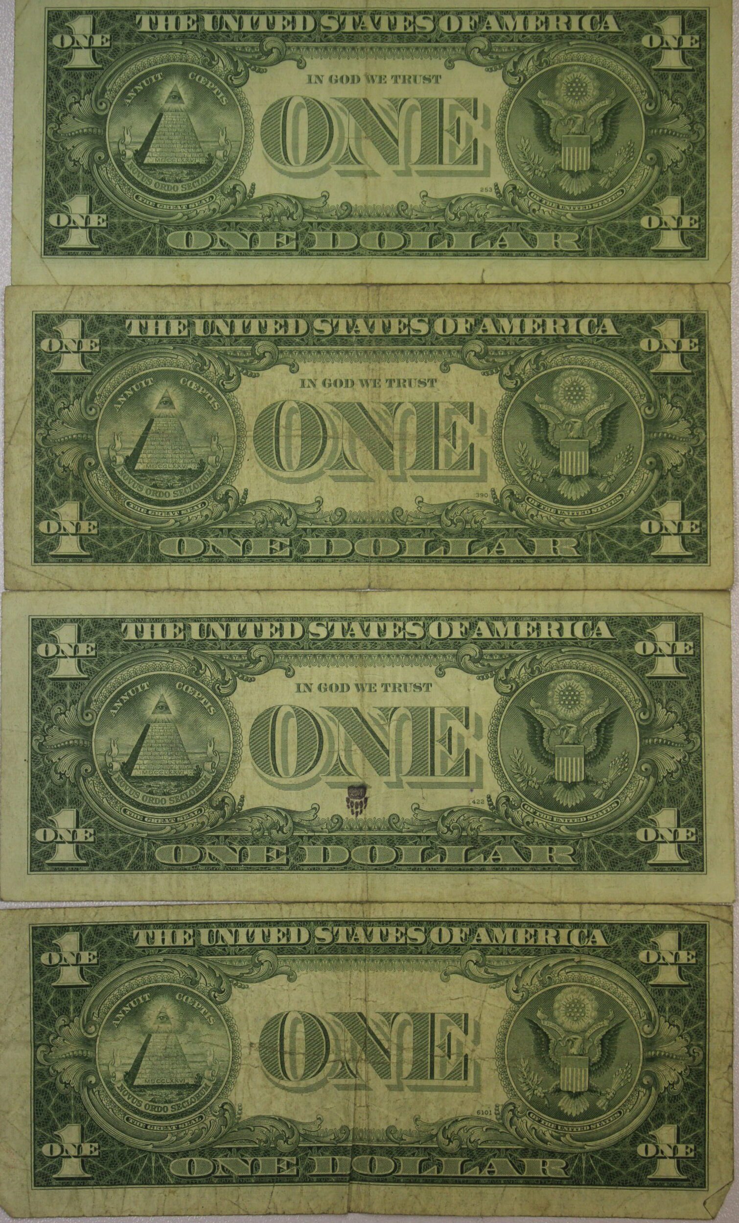 1928, 1928-A,1928-B & 1928-D One Dollar Silver Certificates Funny Backs Circulated