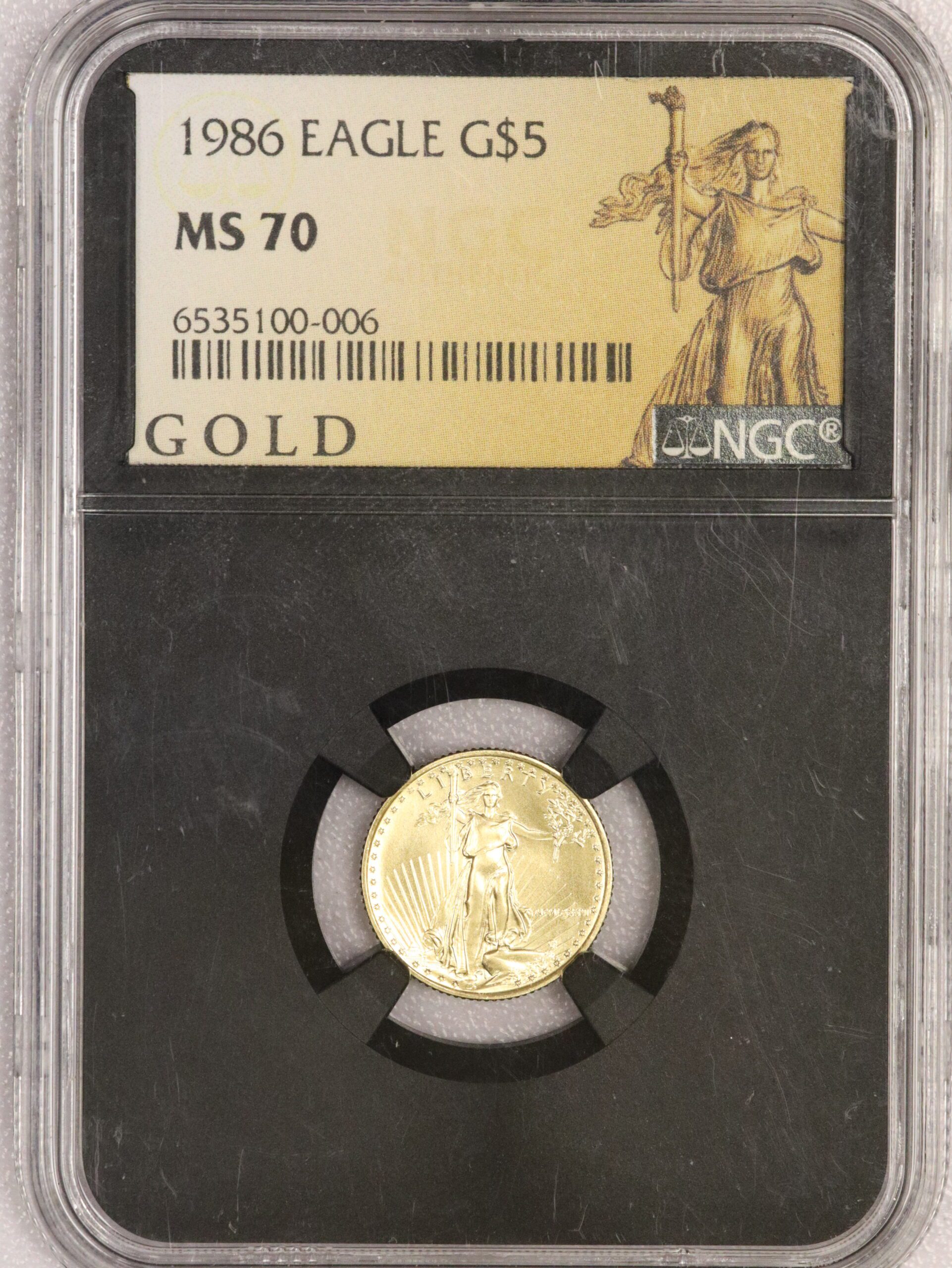 1986 $5 Gold Eagle 1/10th oz NGC MS69 Black Label