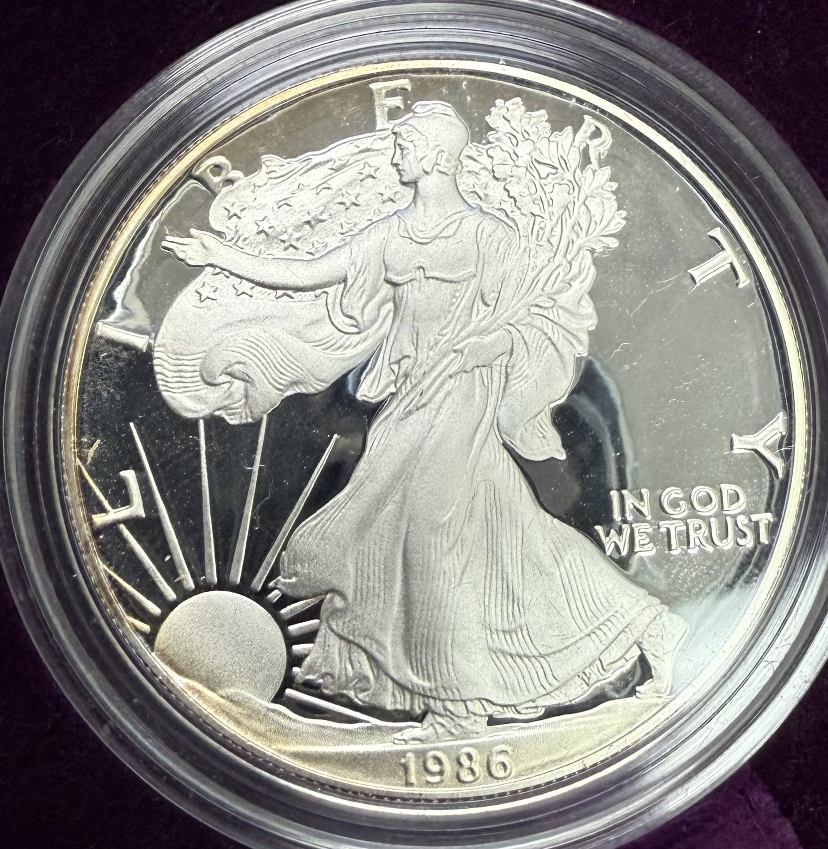 1986 S Silver Eagle Proof OGP Some Obverse Toning
