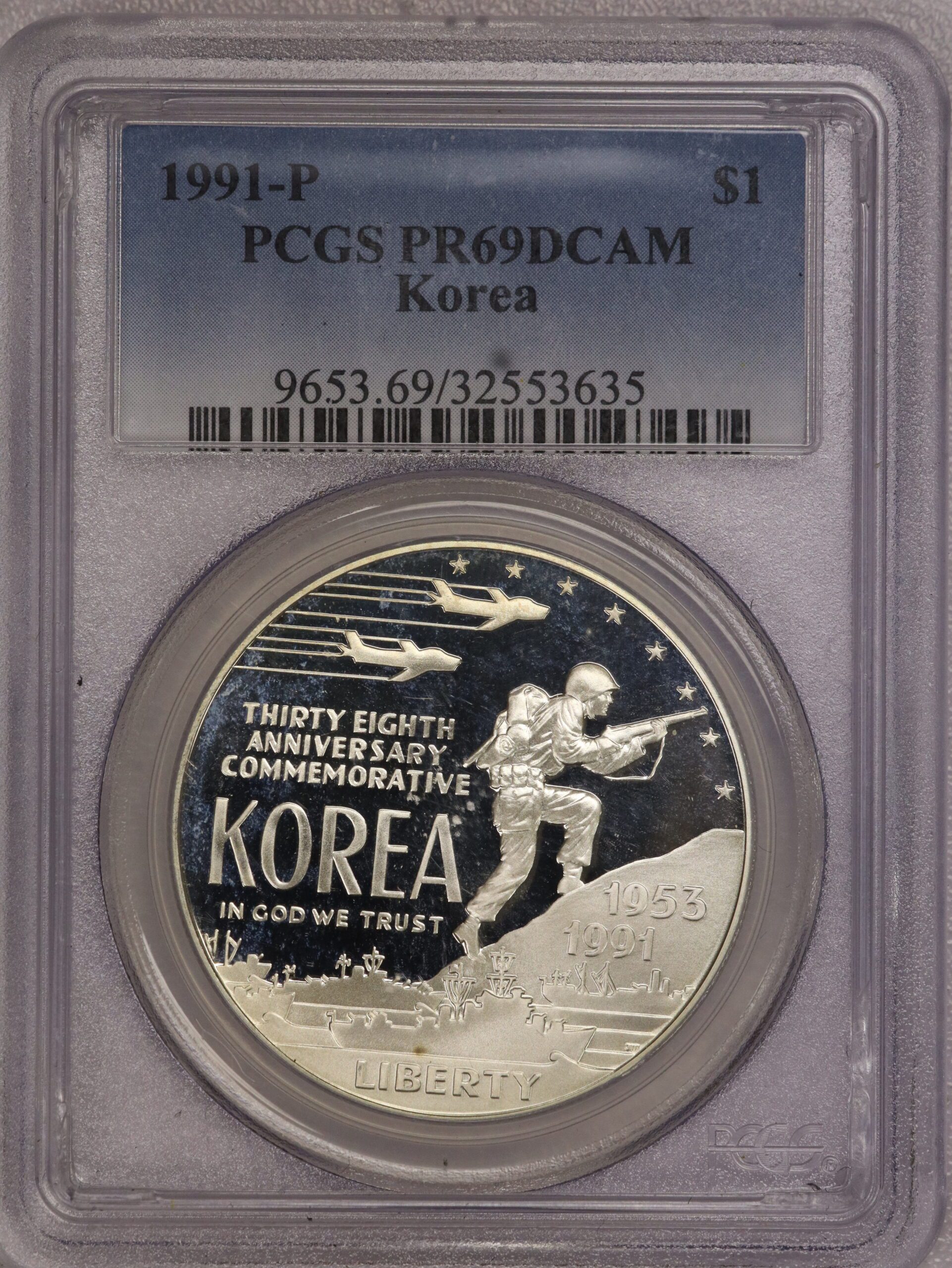 1991 P $1 Dollar 90% Silver US Commemorative Korea PF69 NGC
