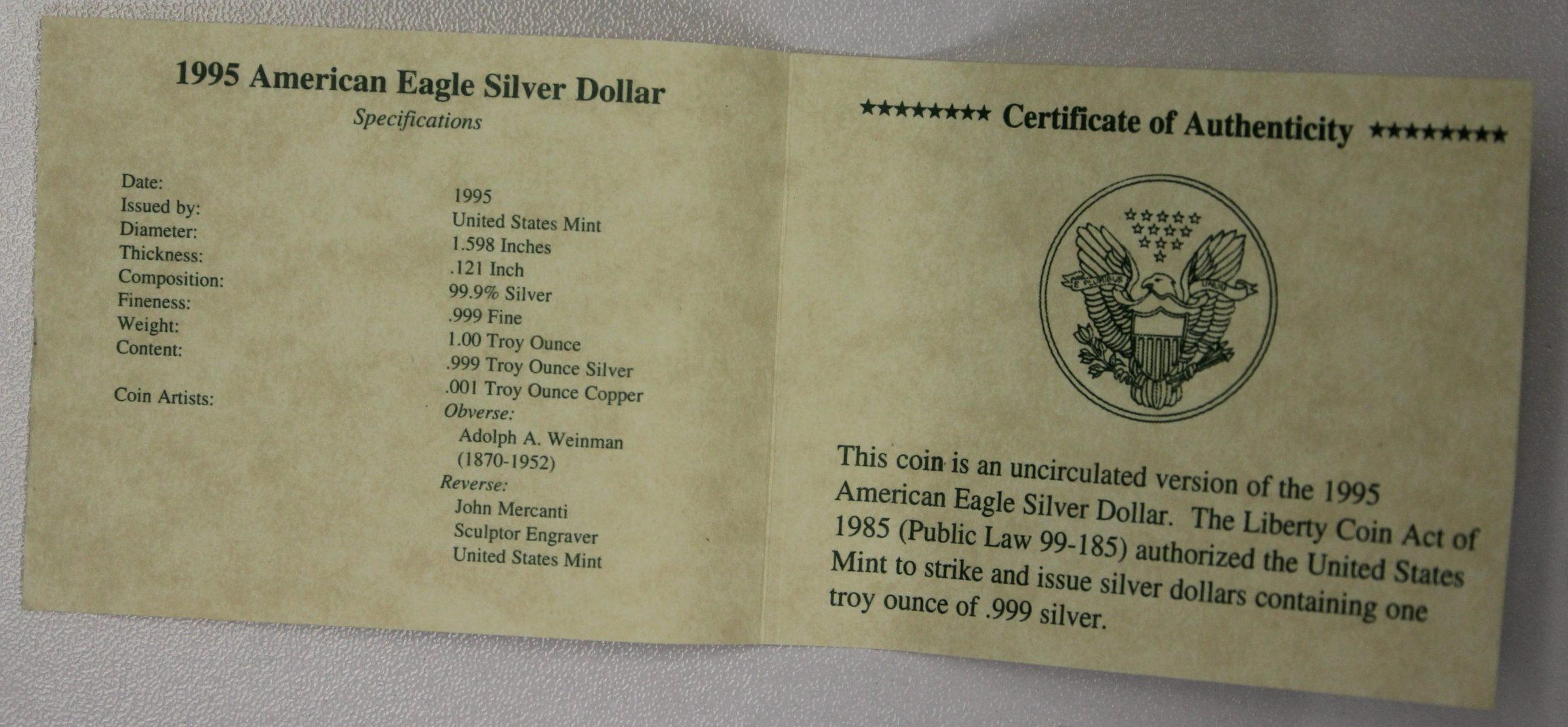 1995 American Silver Eagle – Brilliant Uncirculated