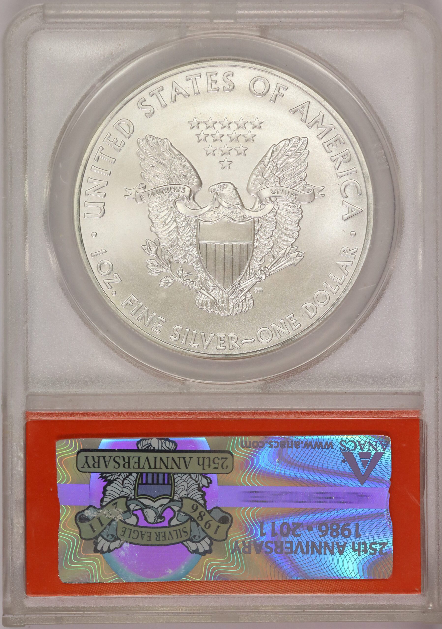 2011 Silver Eagle 25th Anniversary ANACS MS70 (Red)
