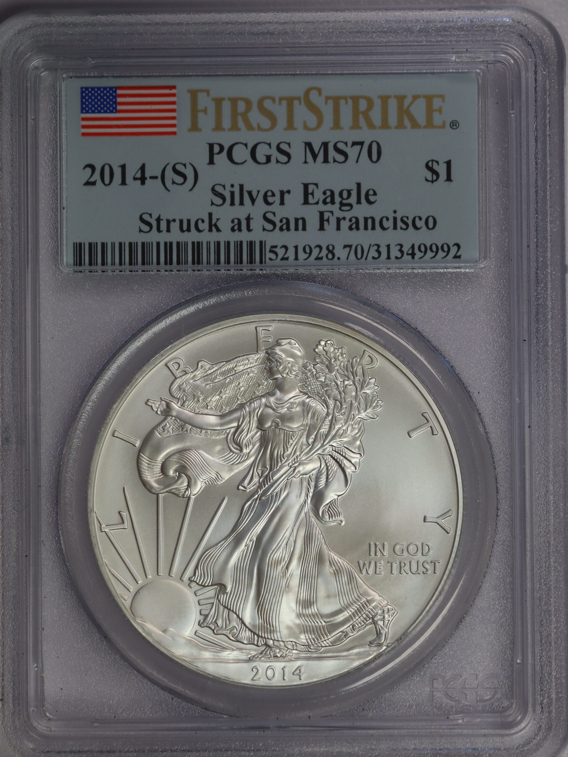 2014 S Silver Eagle MS70 PCGS Flag Label