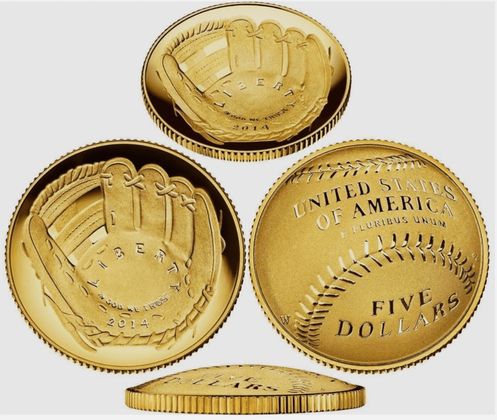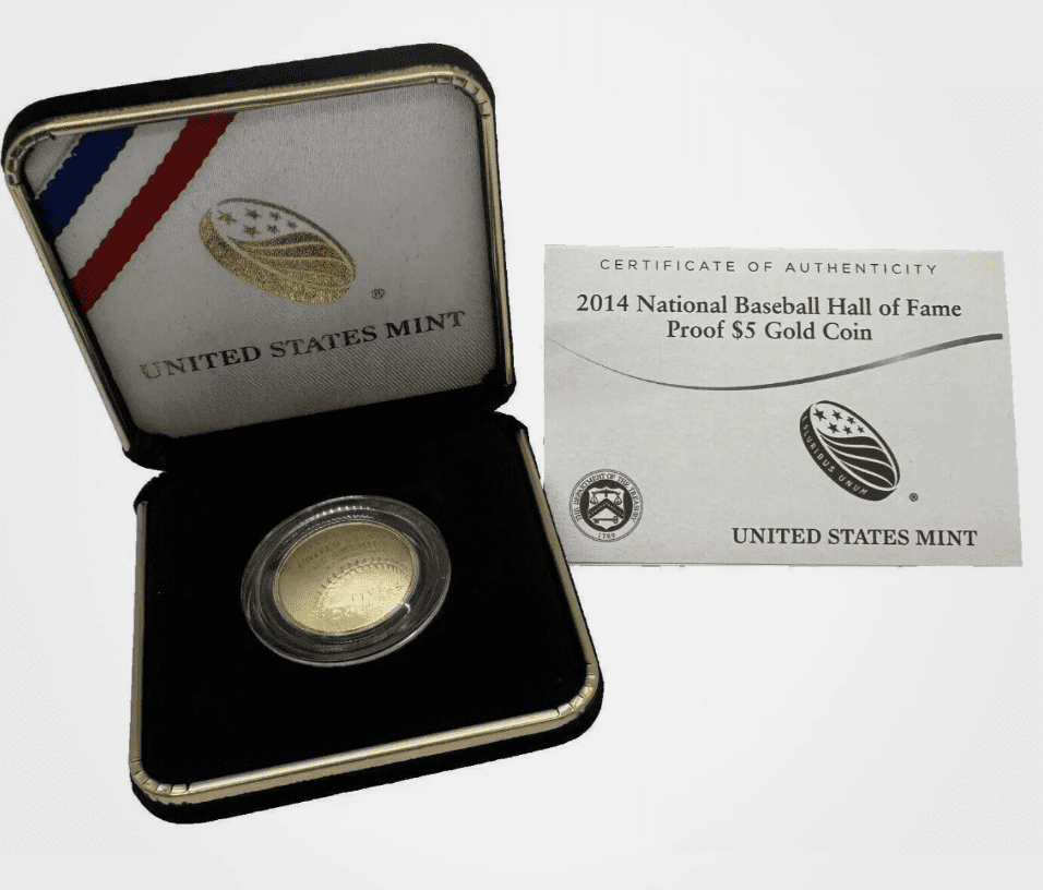 2014 W Baseball Hall Of Fame $5 Gold Commemorative OGP UNC