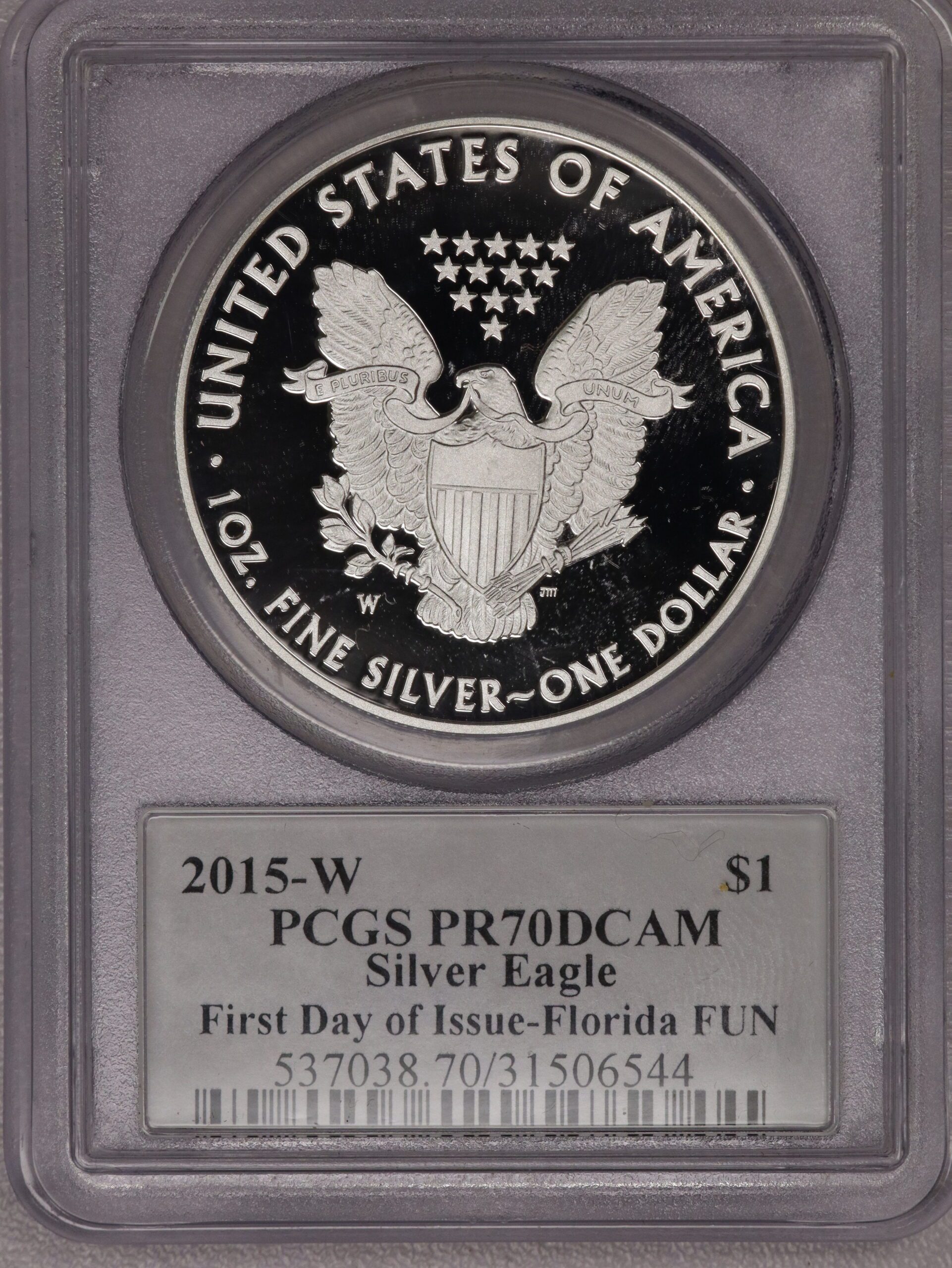 2015 W Proof Silver Eagle PCGS PR70 DCAM Florida FUN