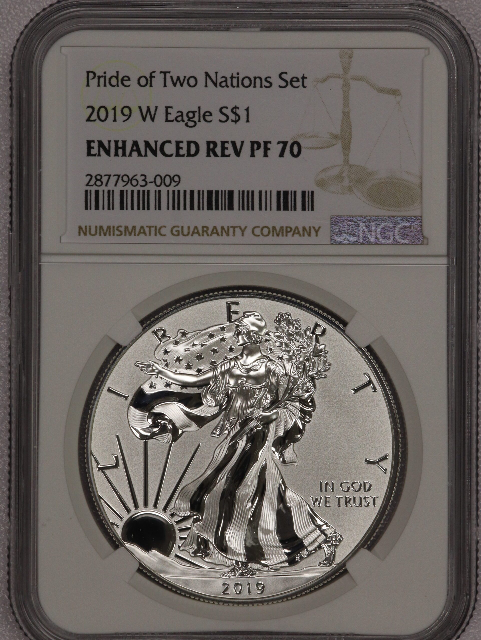 2019 W Silver Eagle Early Release Pride of Two Nations Enhanced Rev PF70 NGC
