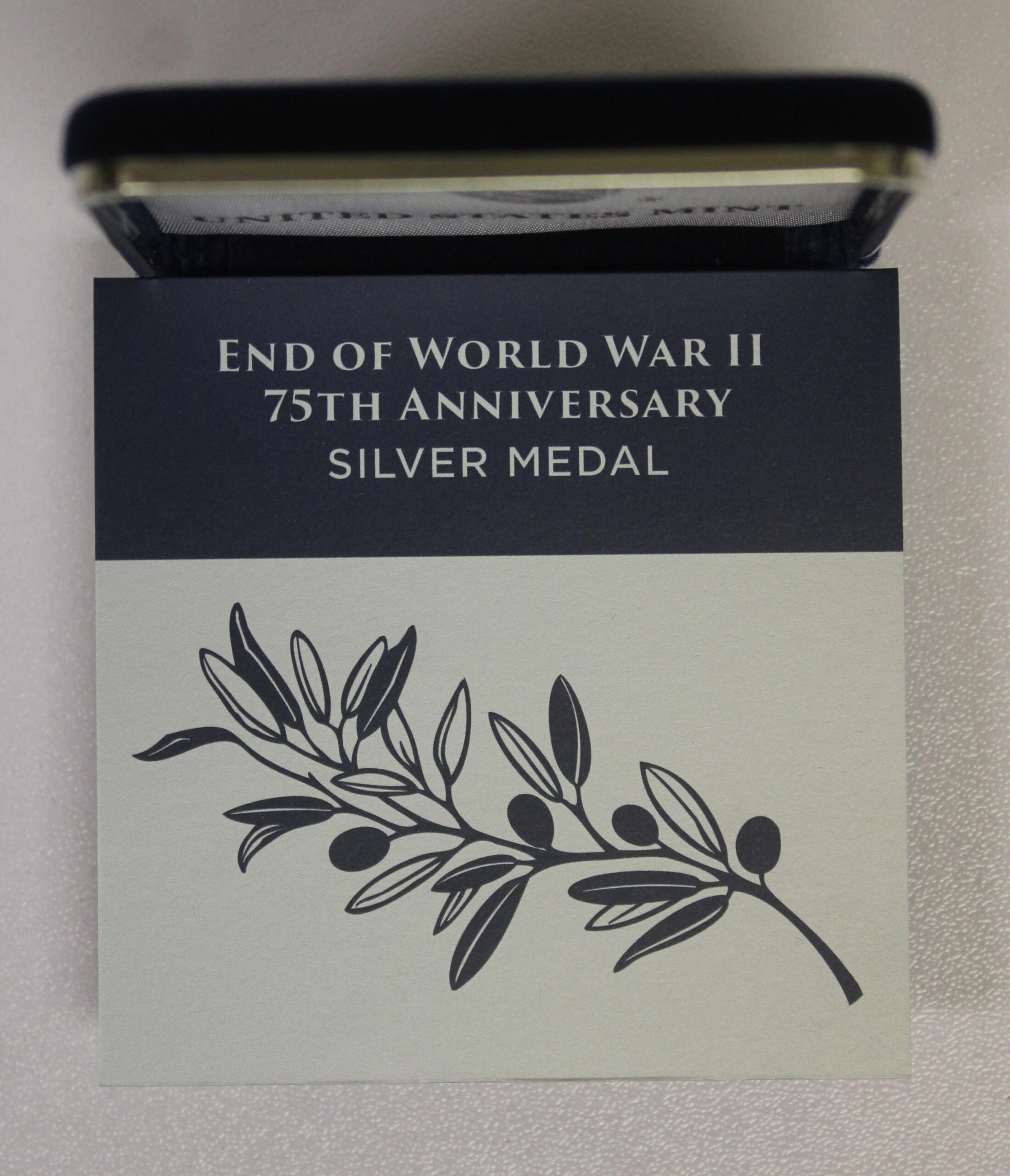2020 End of World War 2 75th Anniversary Silver Medal OGP – One OZ .999 Fine Silver
