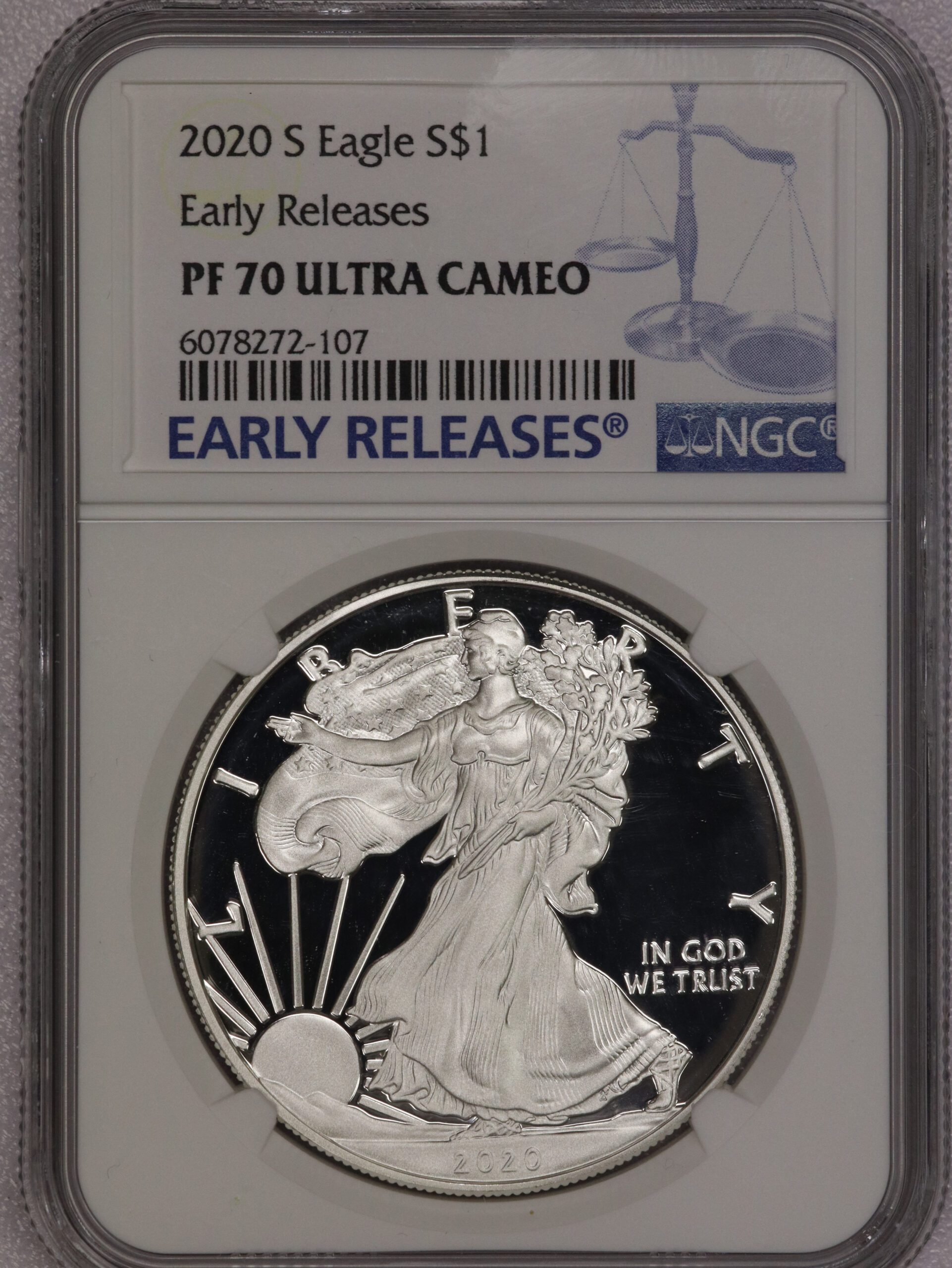 2020 (P) Silver Eagle Early Release Balance Scales Label NGC MS70