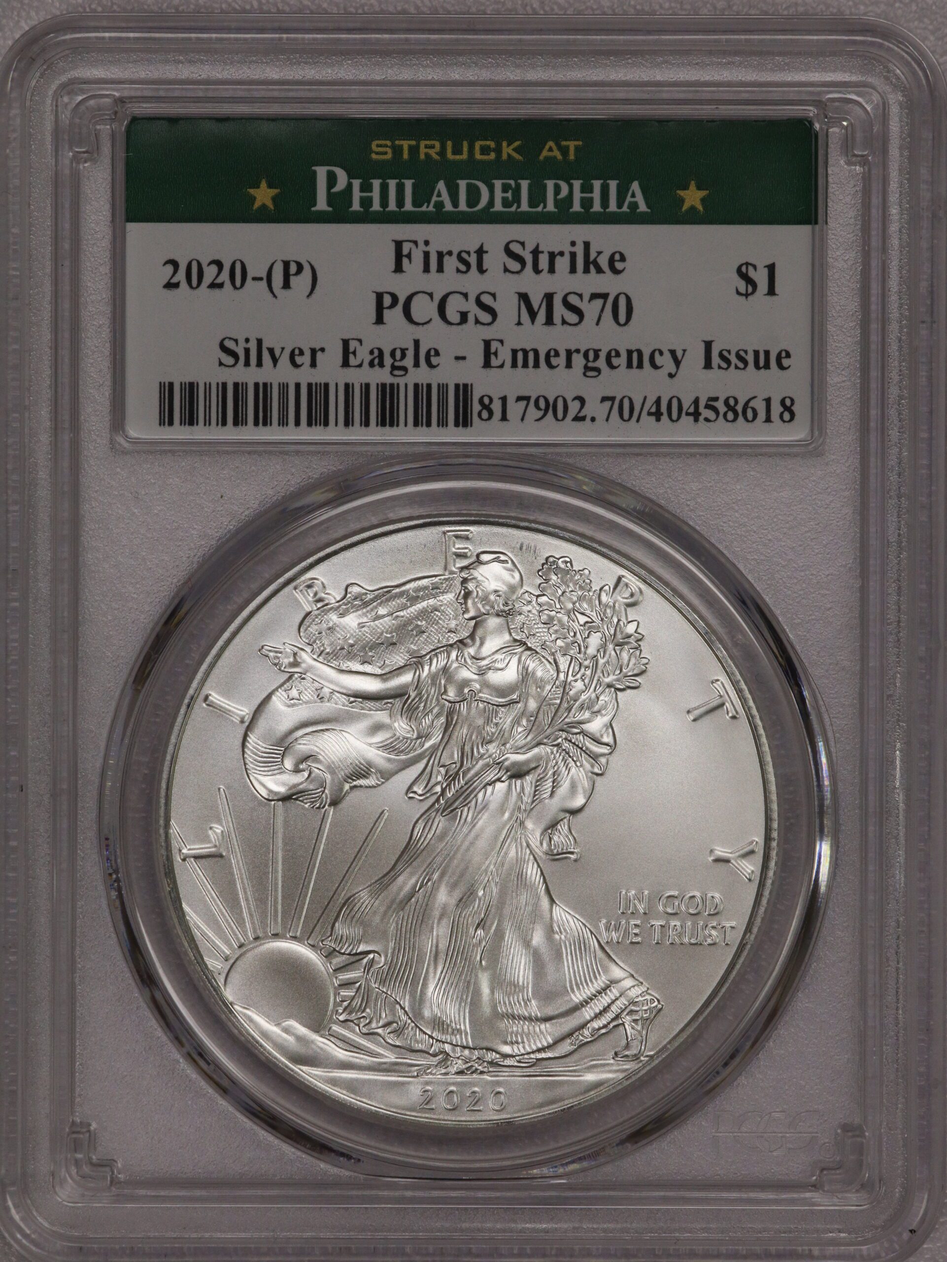 2020 (P) Silver Eagle Emergency Issue PCGS MS70 First Day of Issue Green Label