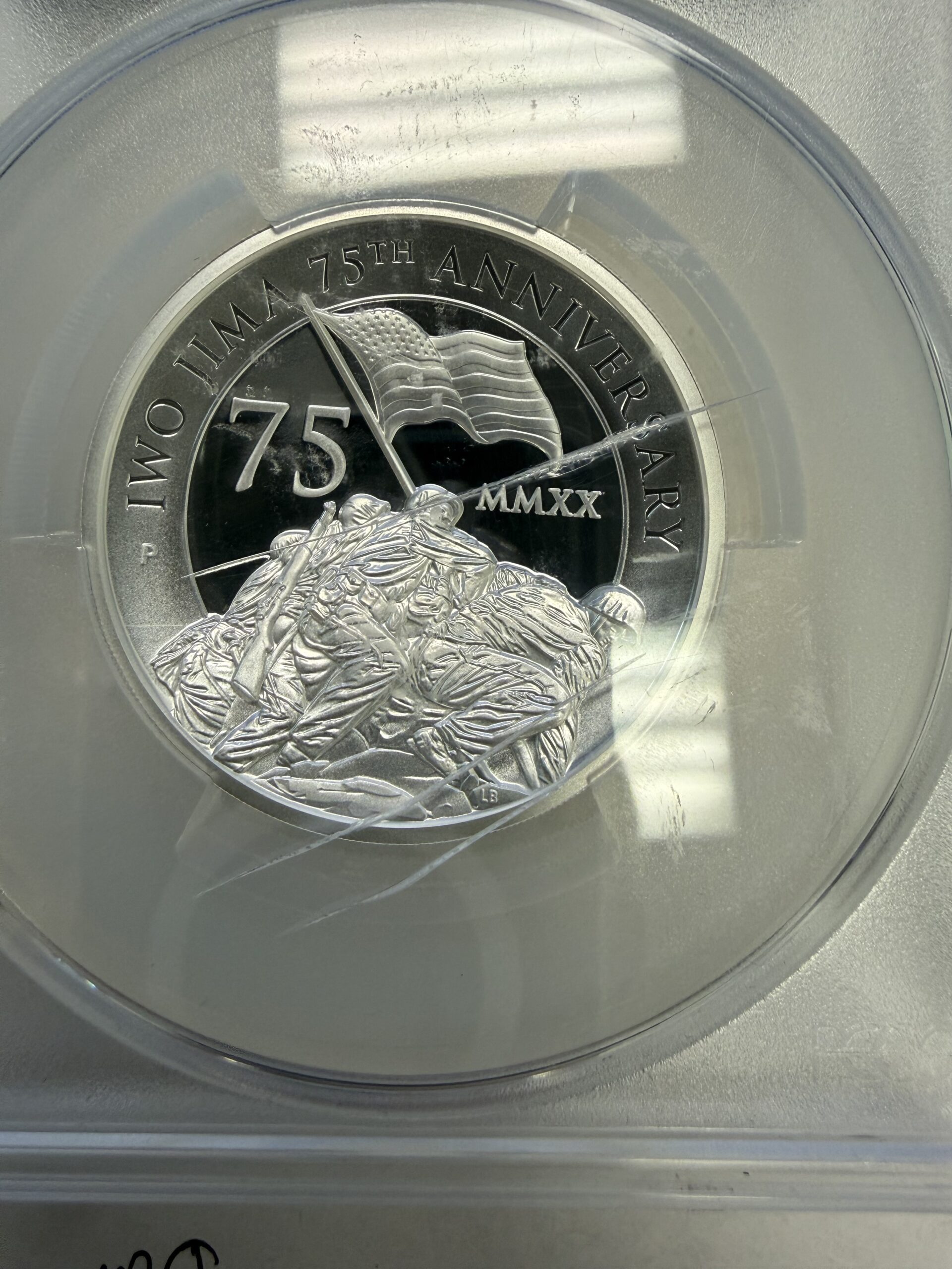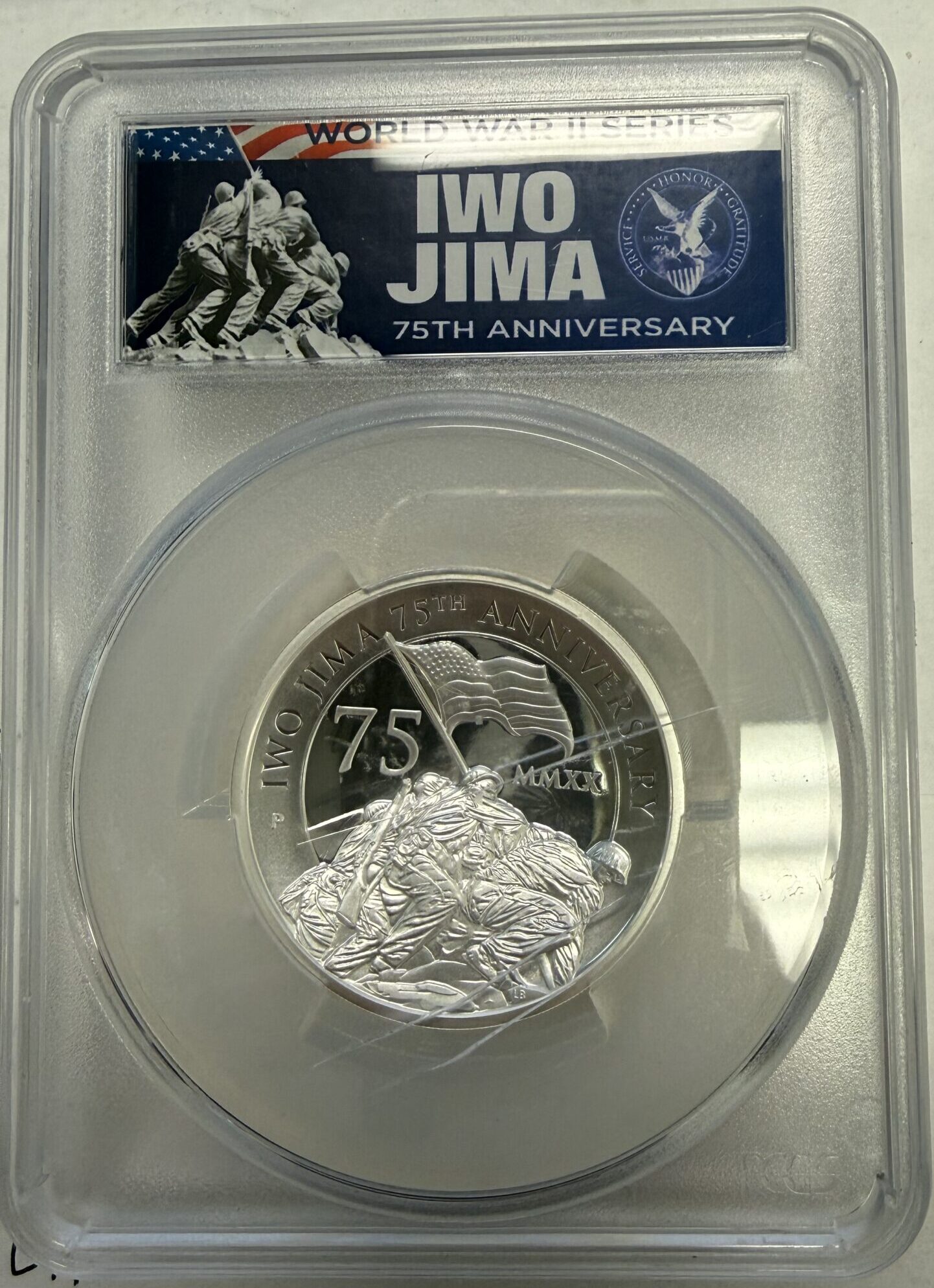 2020 P Tuvalu $5 Iwo Jima 75TH Anniv. 5 oz Silver PR69 DCAM PCGS Cracked Holder