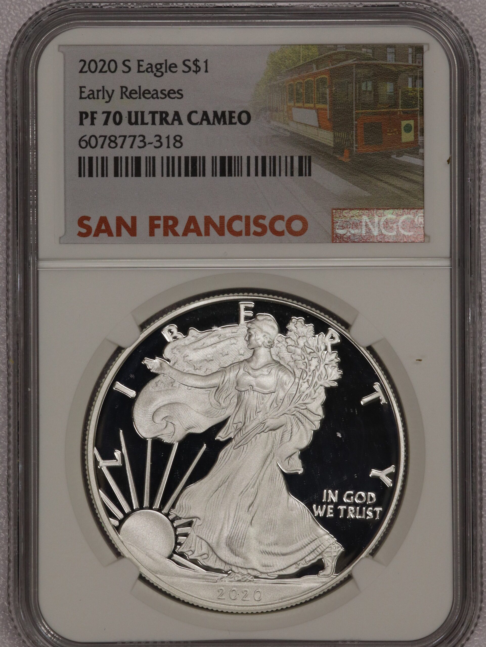 2020 S Silver Eagle Early Release PF70 NGC Eagle – Trolley Label