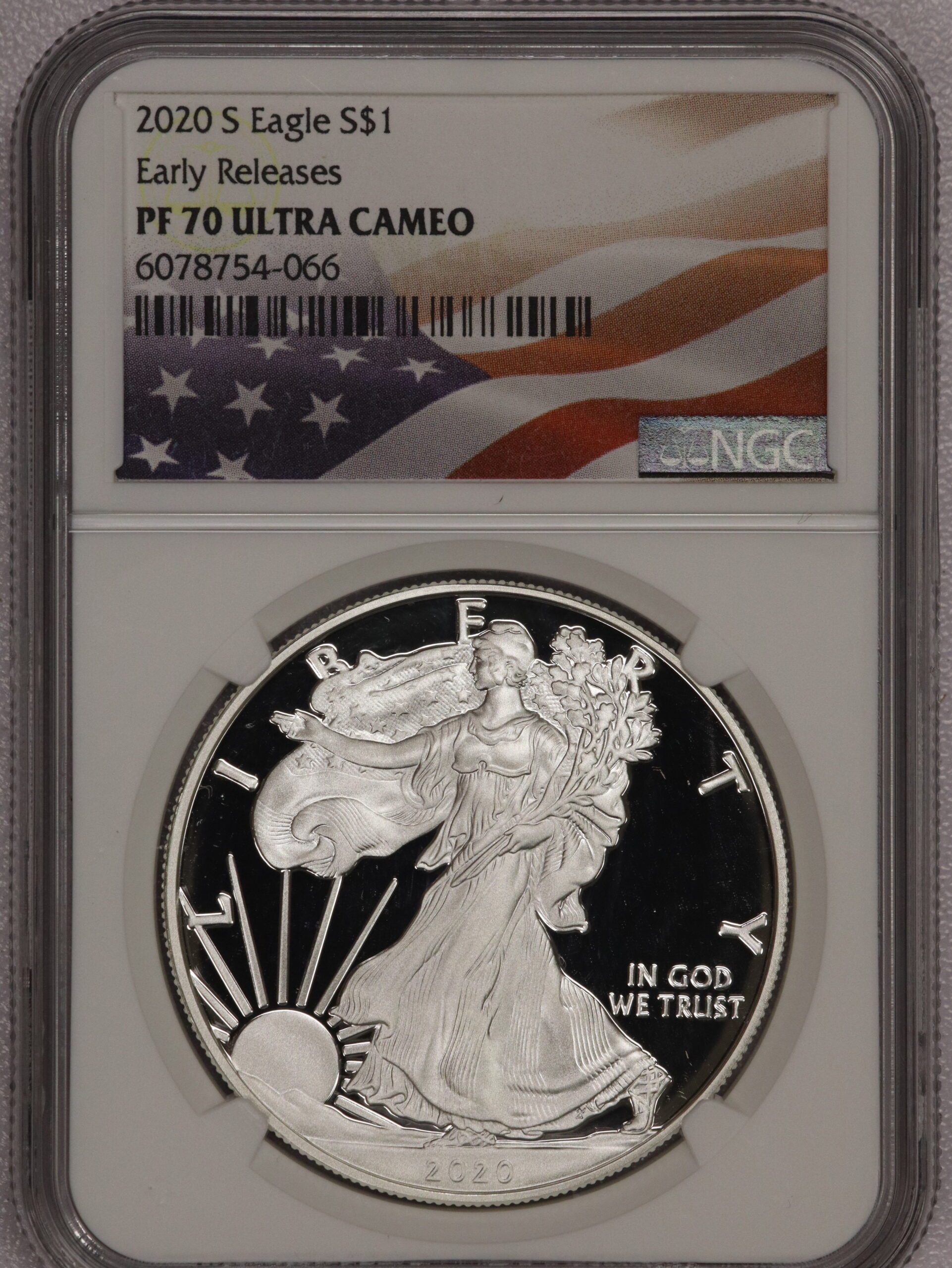 2020 S Silver Eagle Early Release PR70 NGC Flag Label