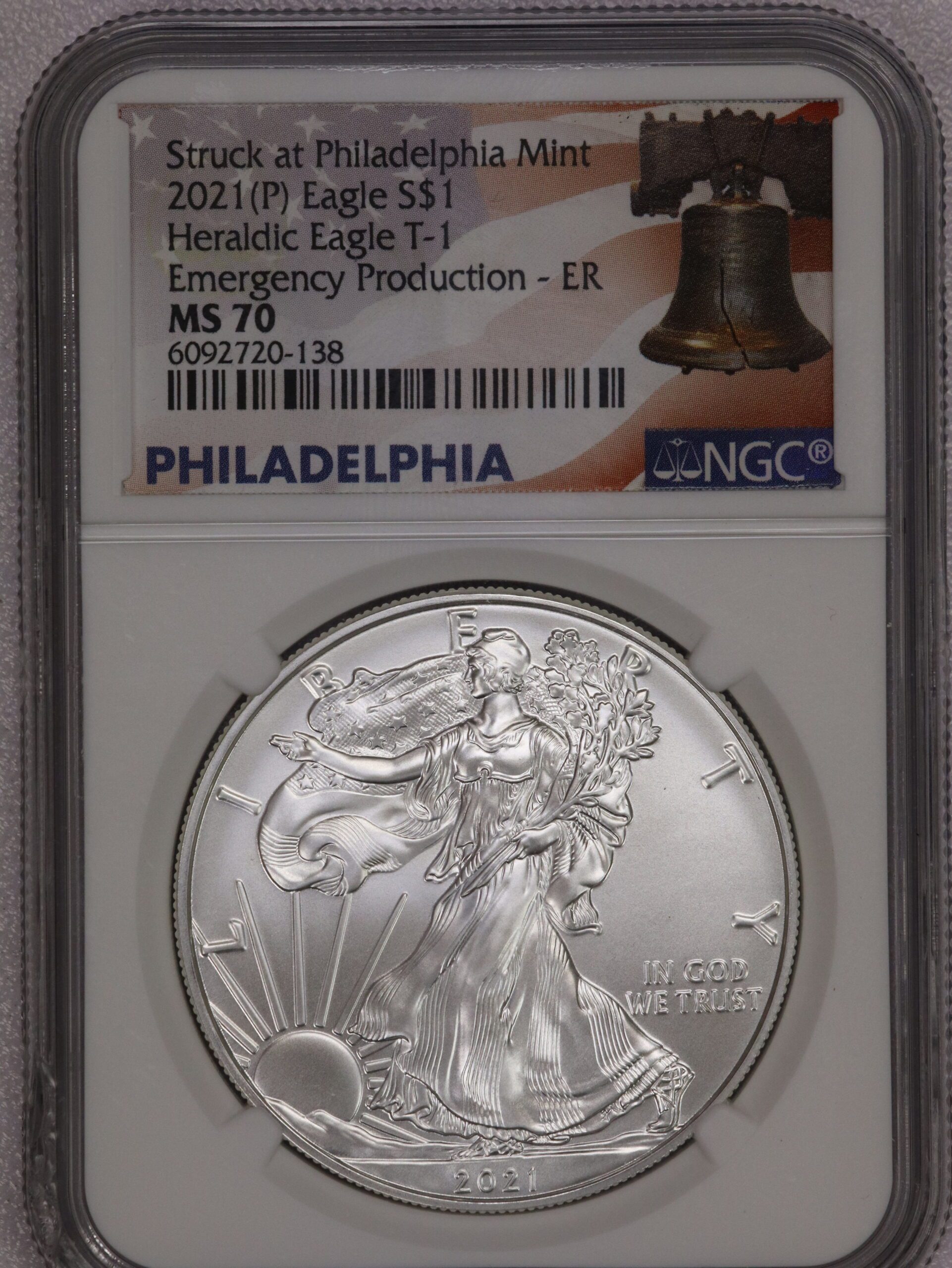 2021 (P) Silver Eagle First Strike Type 1 MS70 NGC Bell Label