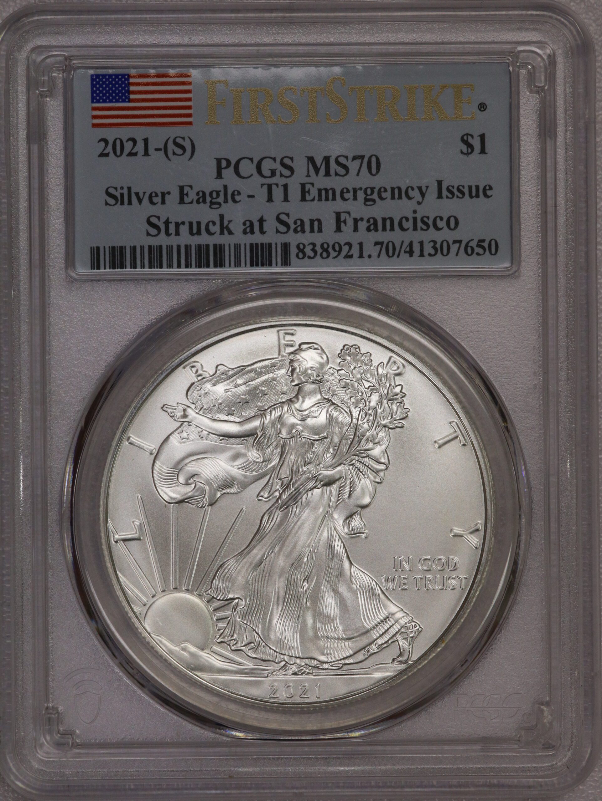 2021 (S) Silver Eagle First Strike Emergency Issue Type 1 MS70 PCGS