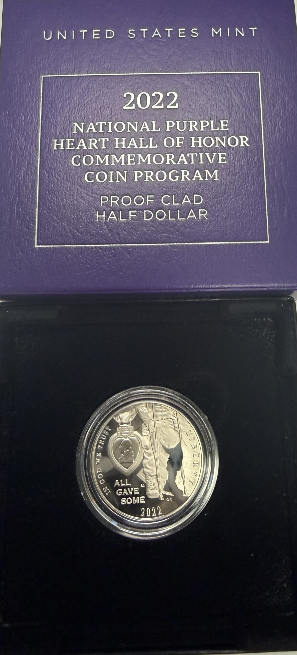 2022 National Purple Heart Commemorative Coin Silver Proof HALF Dollar OGP