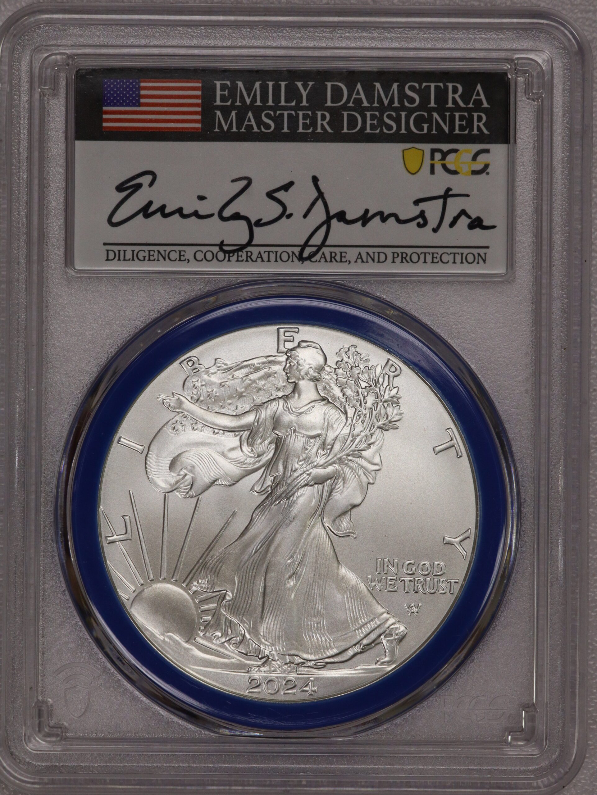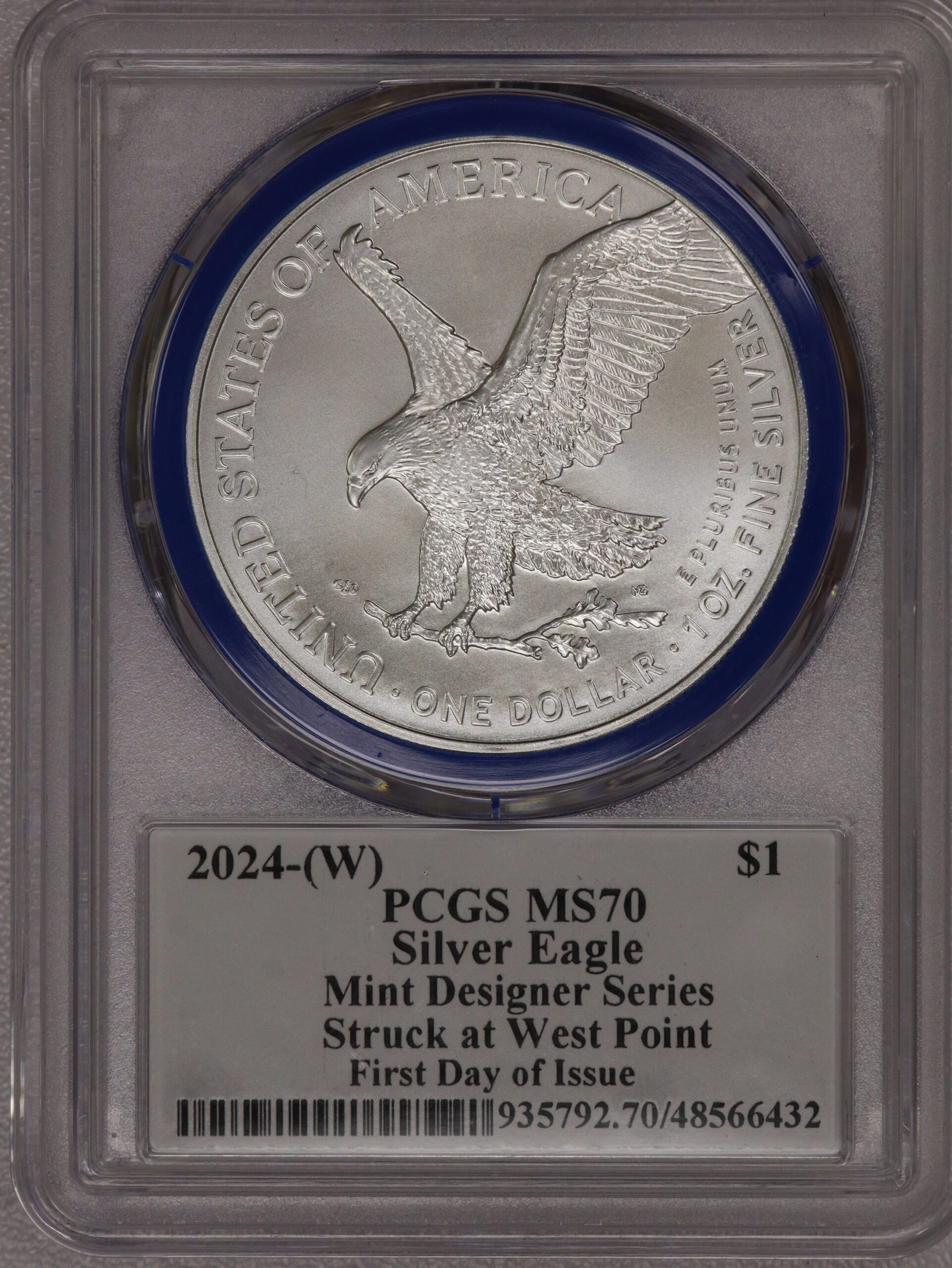 2024 (W) Silver Eagle Mint Designer Series MS70 PCGS Blue Ring