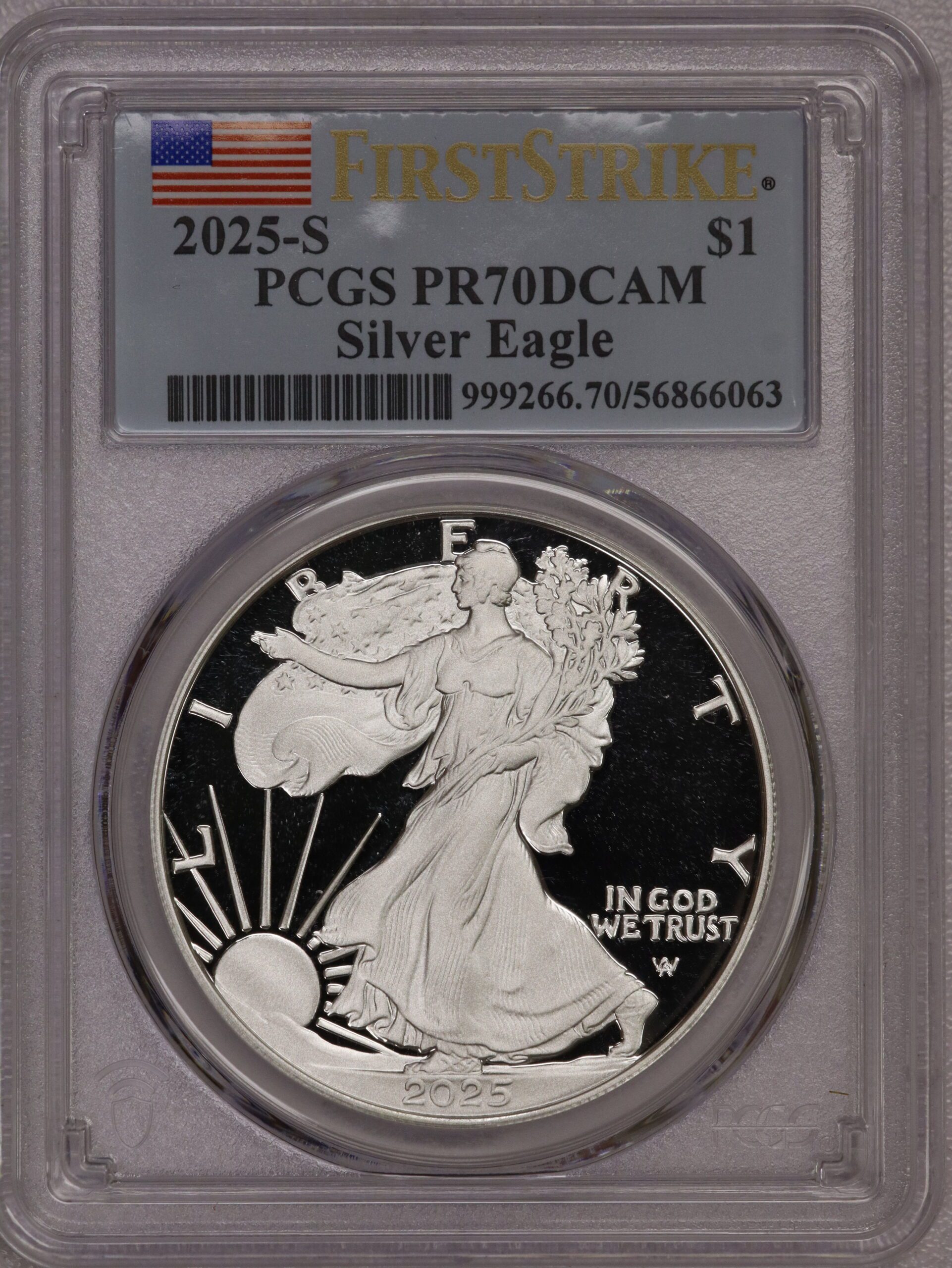 2025 S Silver Eagle FirstStrike Flag Label PR70 PCGS
