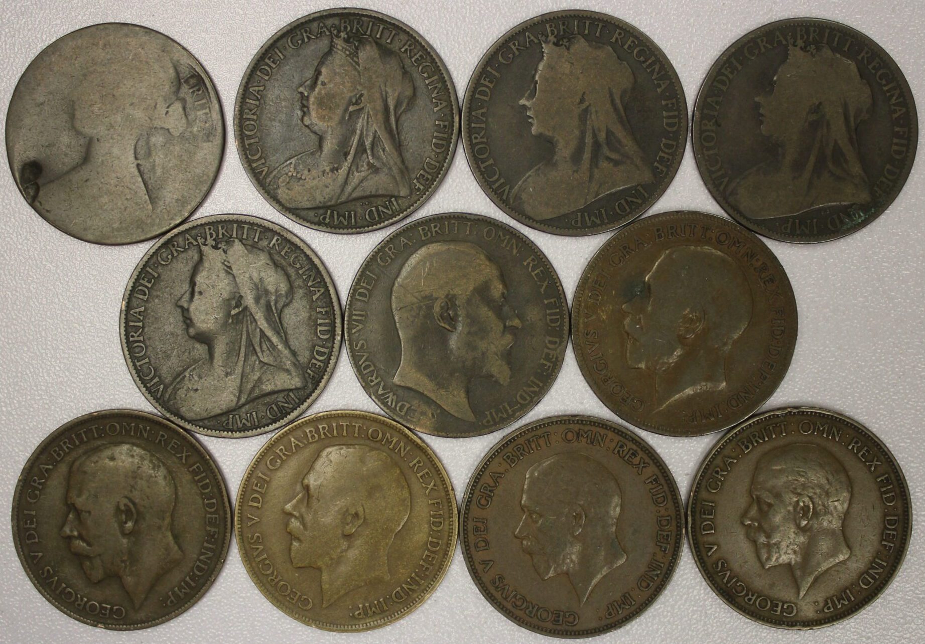 AUCTION-Â Â 11 Different Great Britain Pennies Victoria, Edward & George V