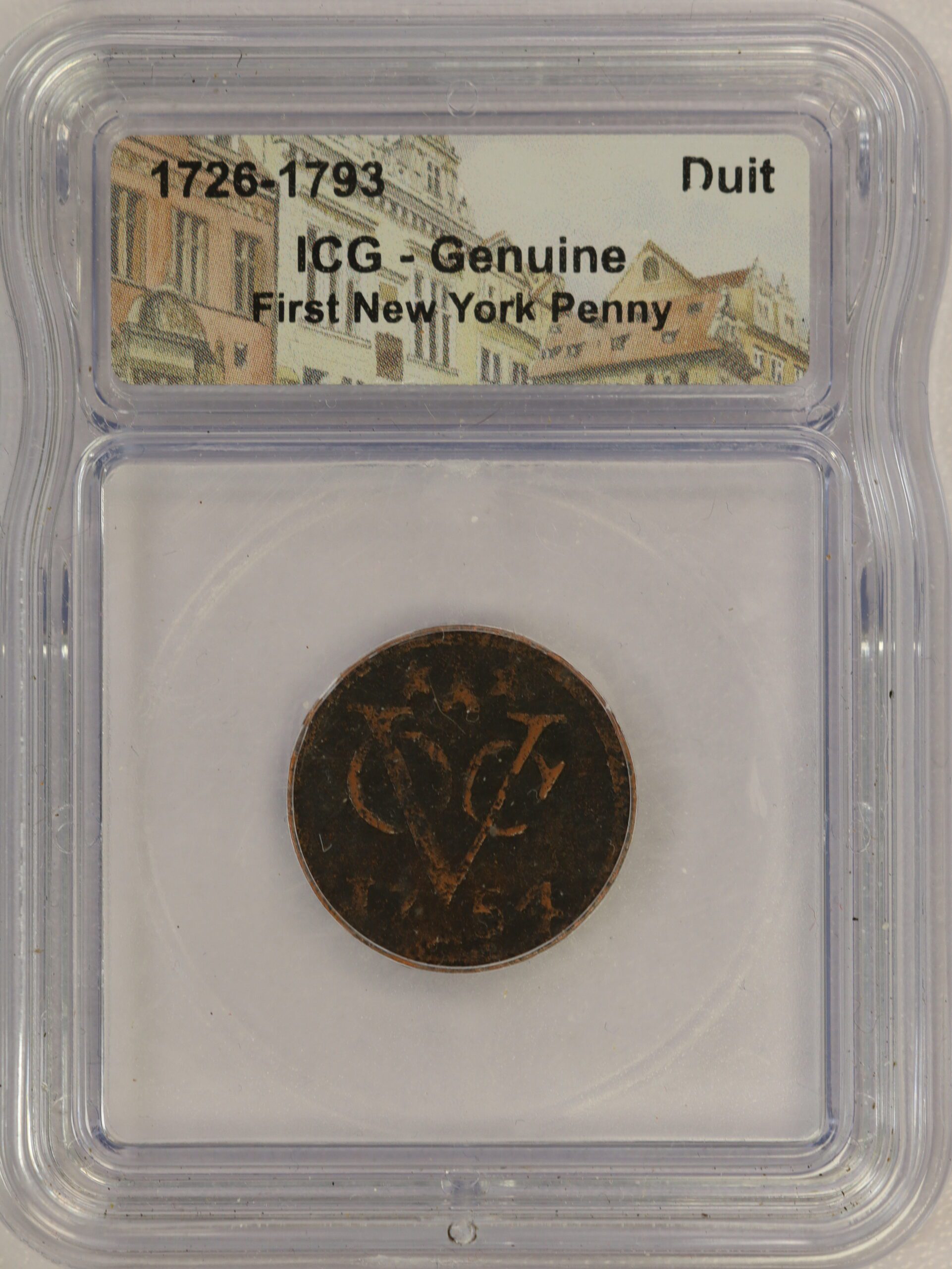 Auction – 1726 – 1793 Duit Genuine New York Penny ICG