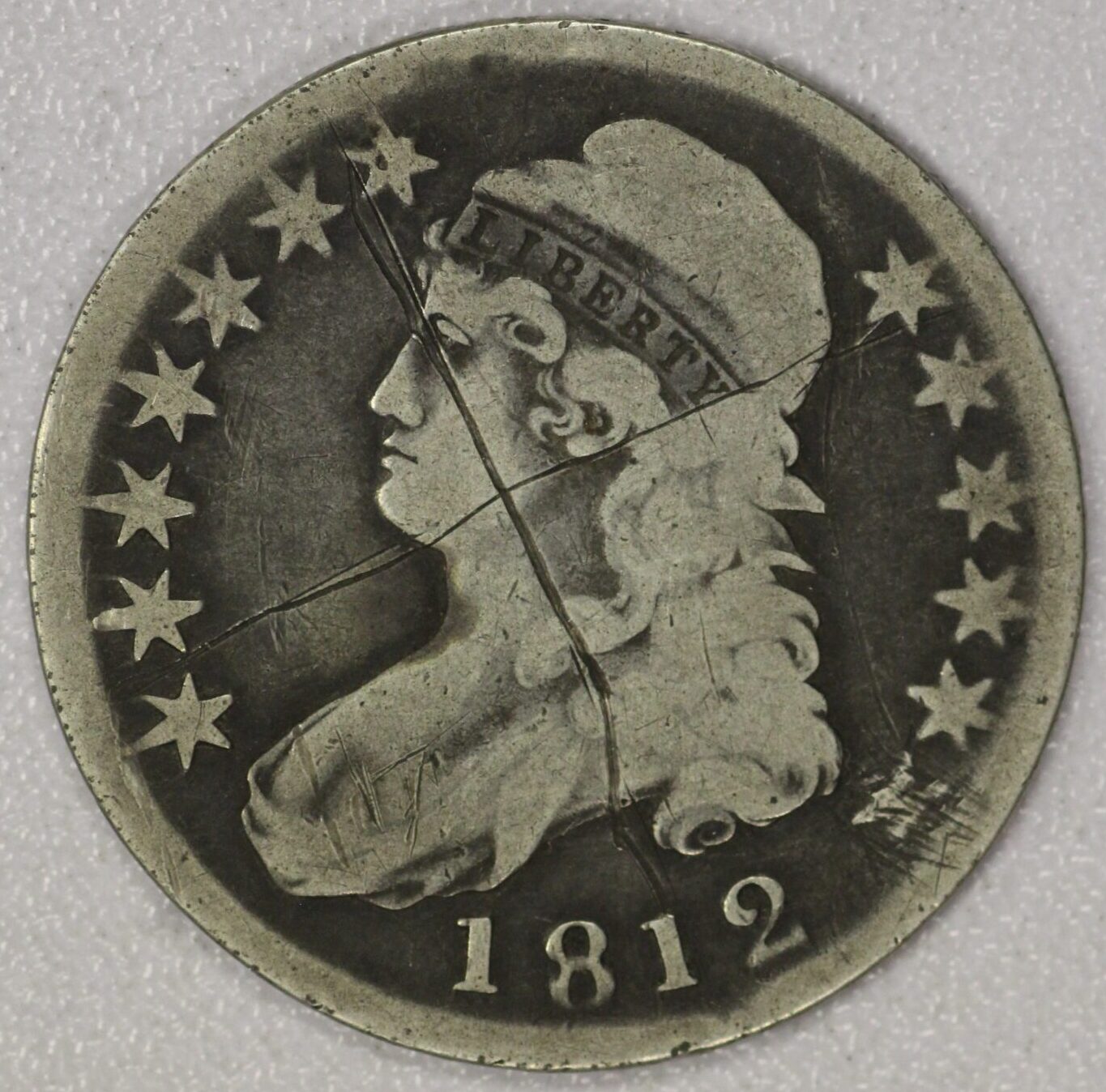AUCTION- 1812 Capped Bust Half Dollar Scratched & Worn