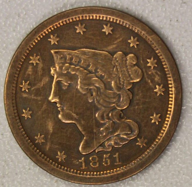 AUCTION-Â Â 1851 Braided Hair Half Cent Harshly Cleaned