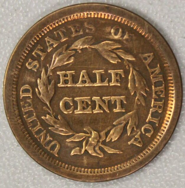 AUCTION- 1851 Braided Hair Half Cent Harshly Cleaned