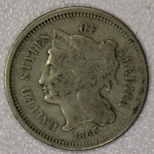 AUCTION- 1866 Three Cent Piece Nickel Circulated