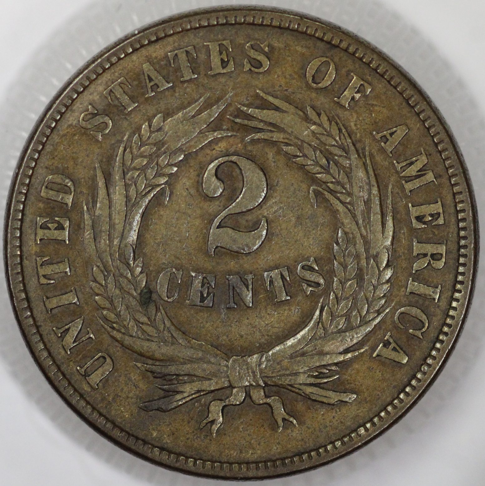 Auction – 1867 Two 2 Cent Shield EF Old Cleaning Retoned