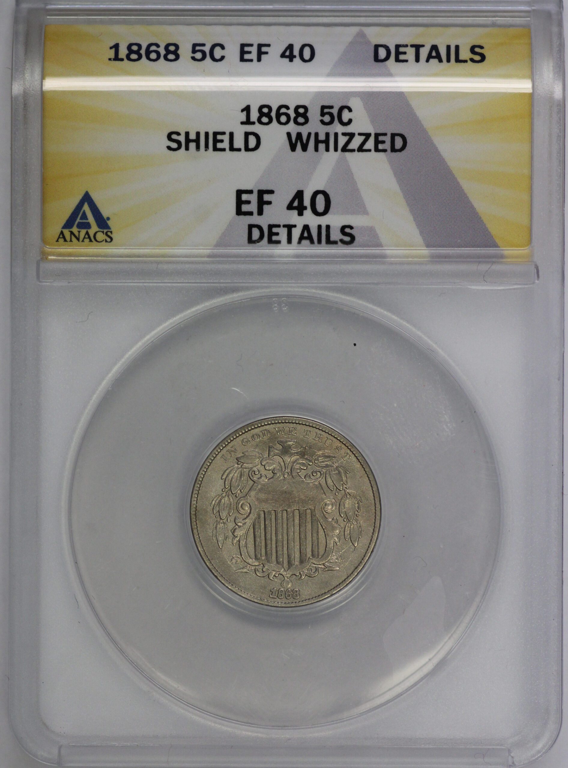 Auction – 1868 Shield Nickel EF40 Cleaned ANACS
